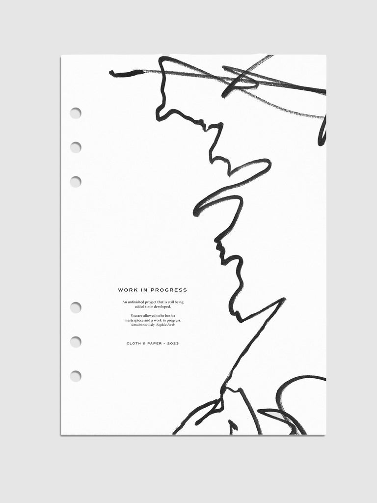 Ensemble Dashboard, Le Blanc, A5, Cloth and Paper. Dashboard displayed on a neutral background. Dashboard displayed on a neutral background. Size shown is A5.