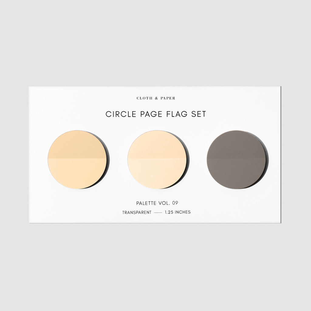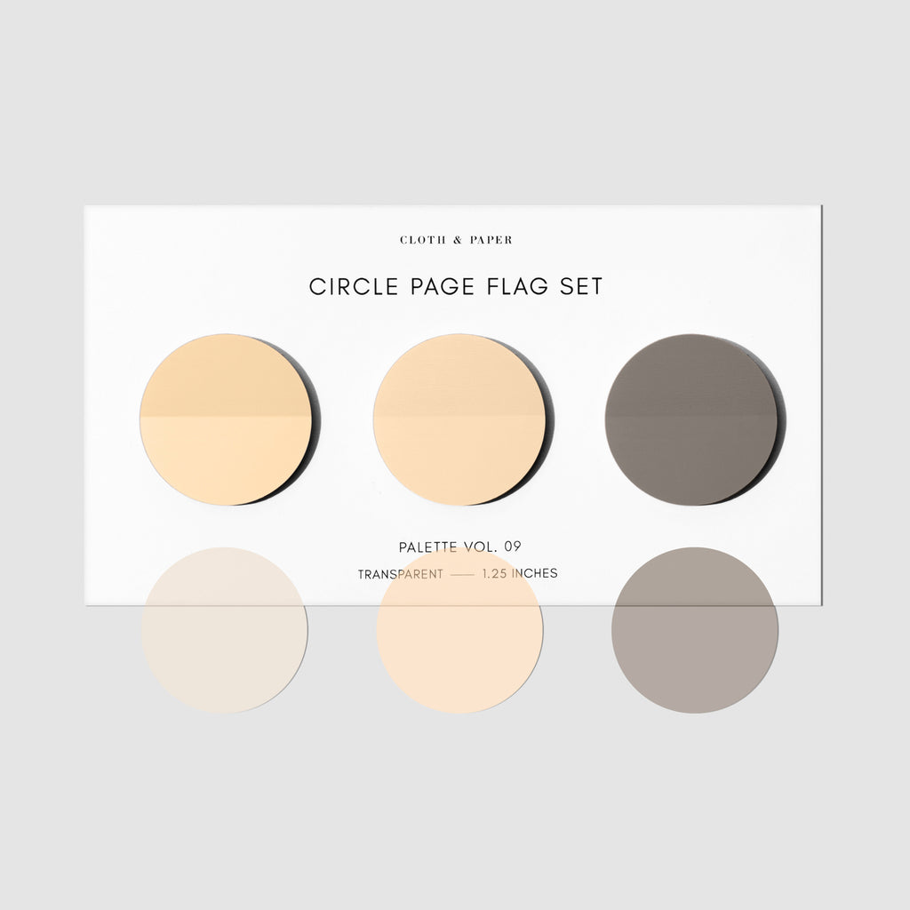 Page flags on their backing on a neutral background. Pictured is color set Volume 08.