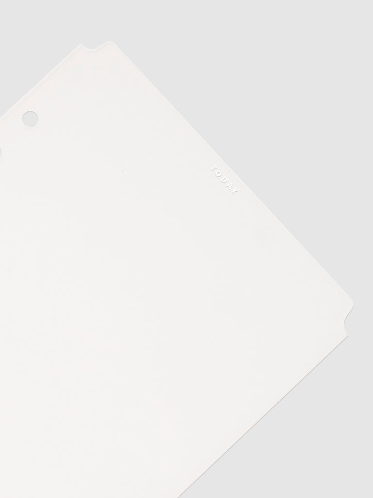 Today dry erase tab divider in durable glass plastic, serving as both a page marker and a reusable writing surface.