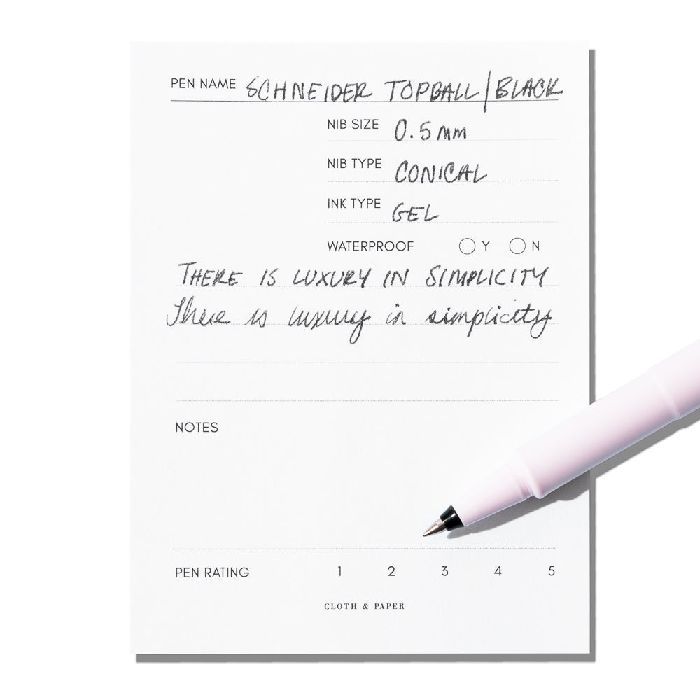 Schneider Topball Gel Pen, Black, Cloth and Paper. Pen displayed on a neutral background.