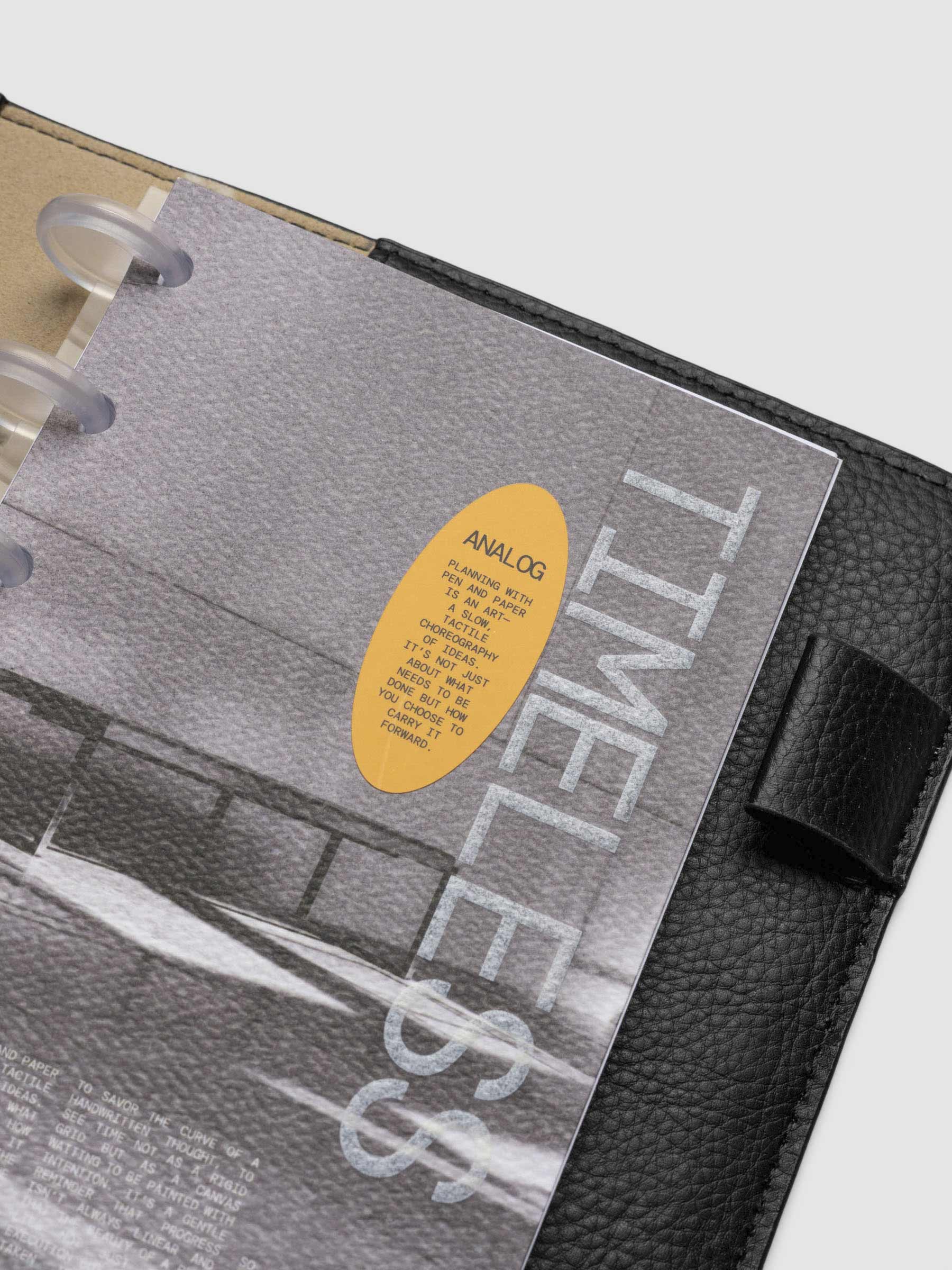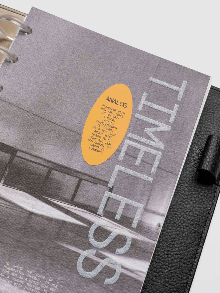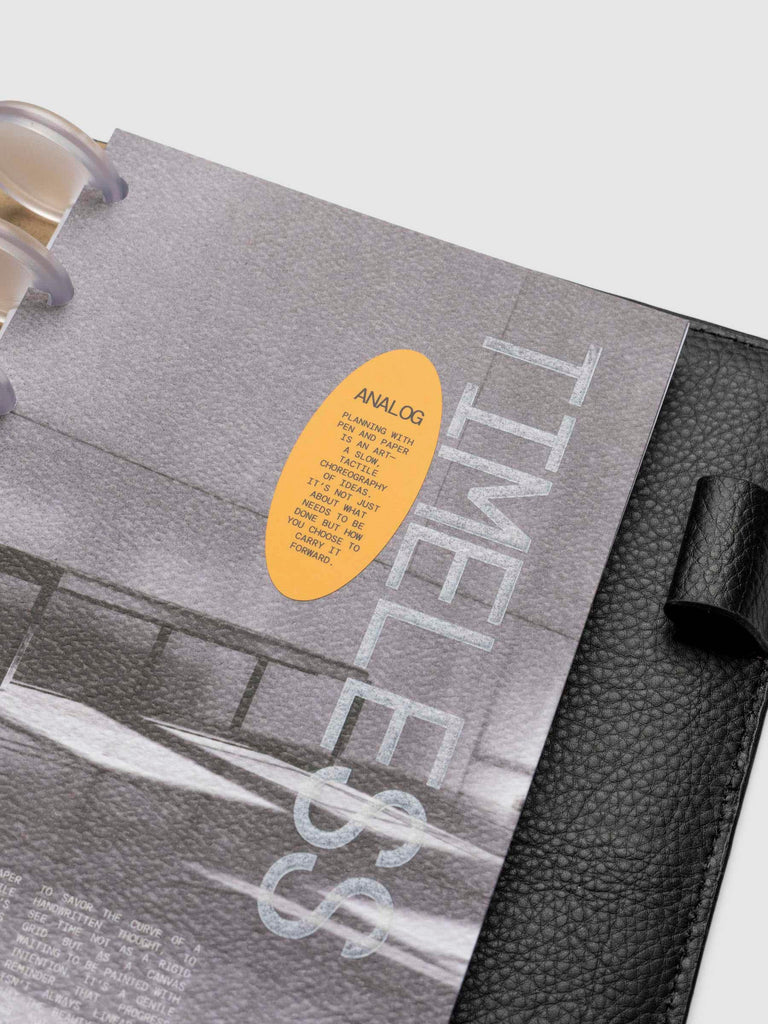 A thick paper planner dashboard with full printing and a bold orange decorative sticker for a functional yet stylish touch.