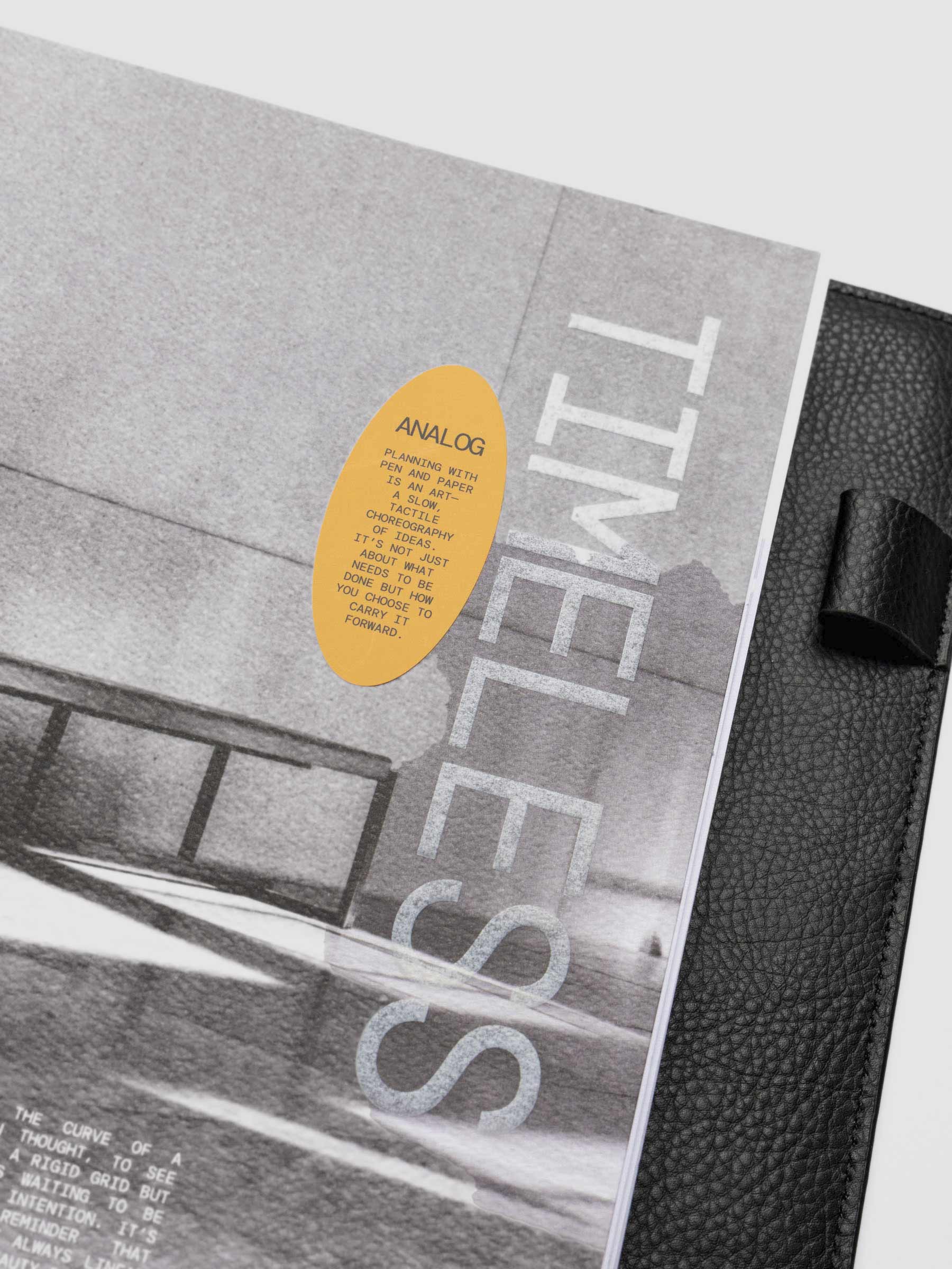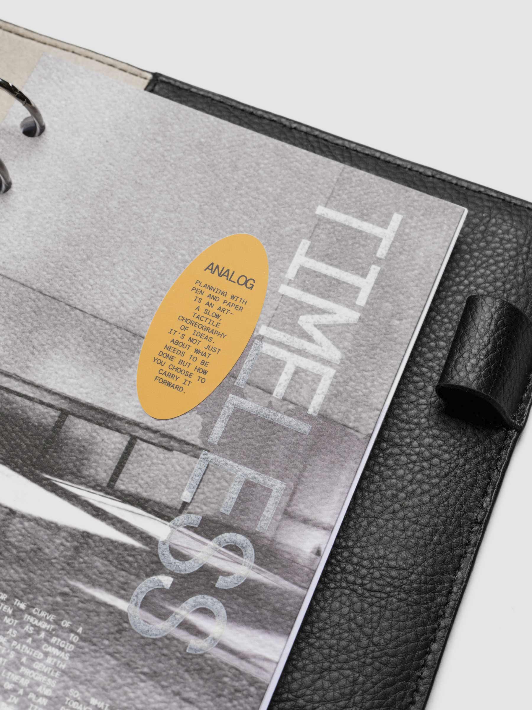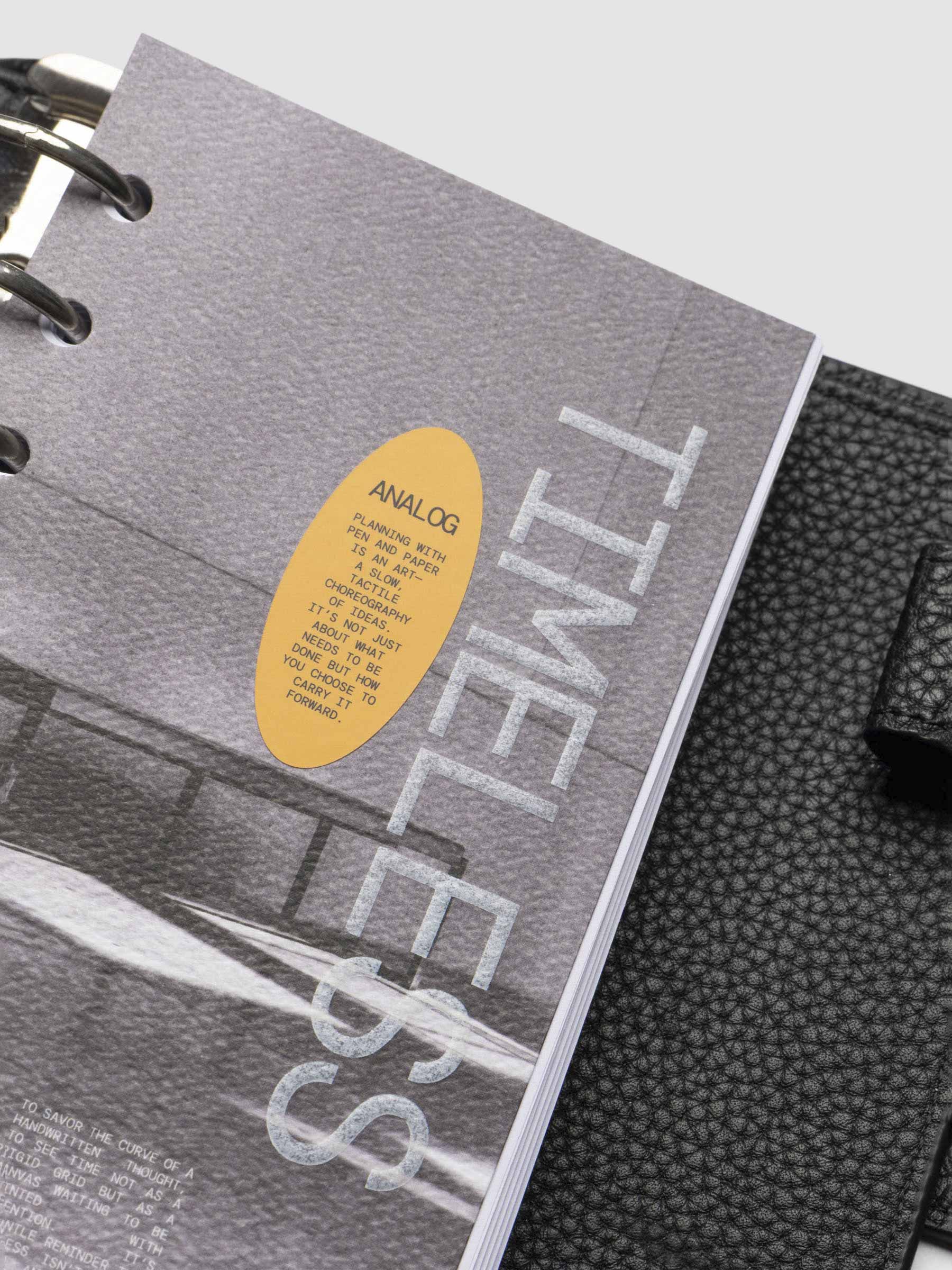 A thick paper planner dashboard with full printing and a bold orange decorative sticker for a functional yet stylish touch.