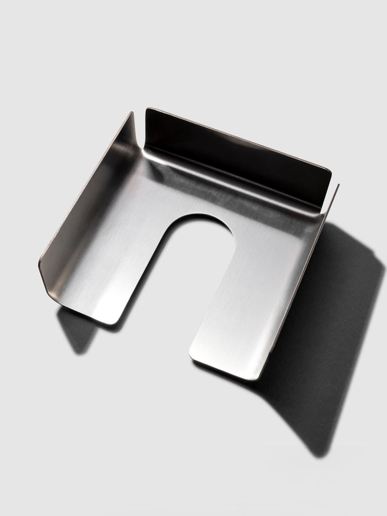 Sticky Note Holder in stainless steel with a 3 x 3 in capacity, including a matching stencil and 100-page sticky note set.
