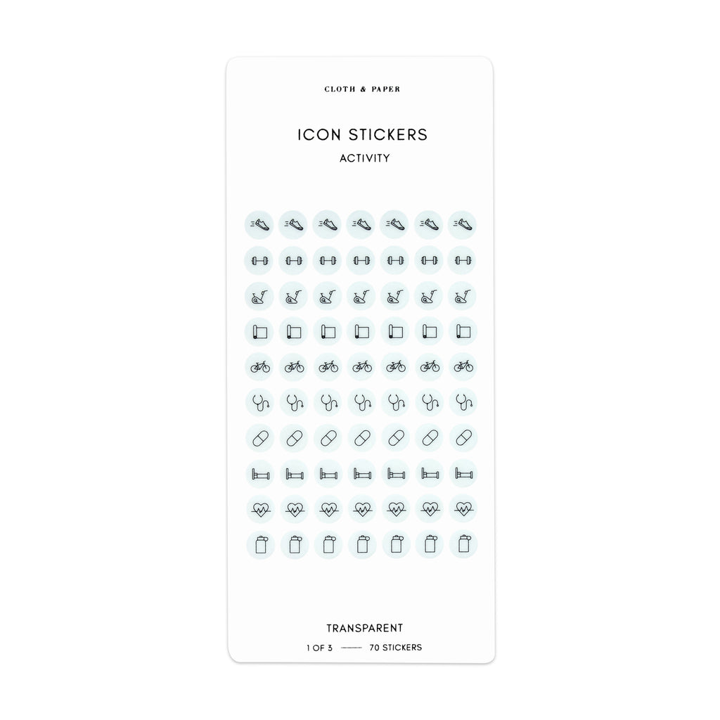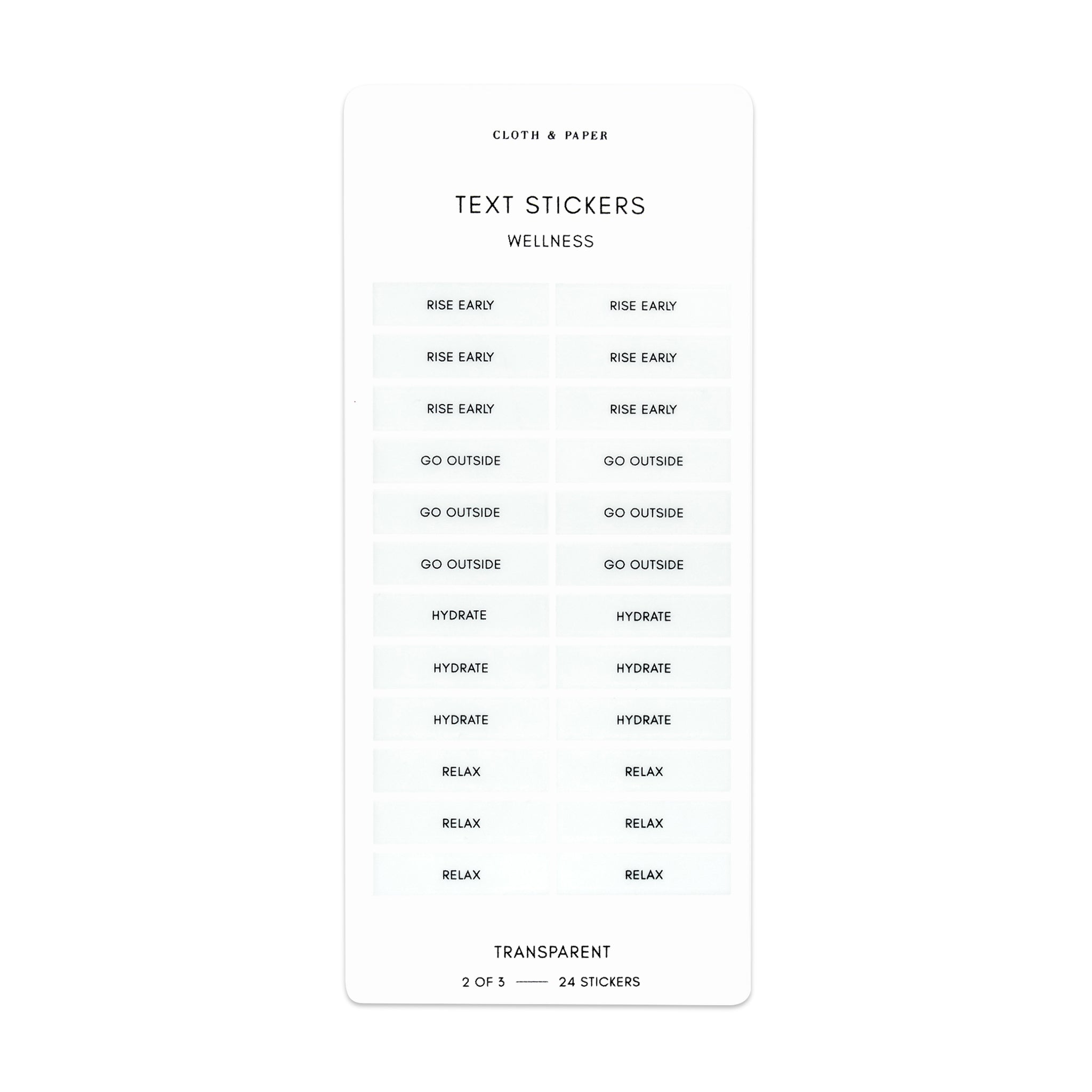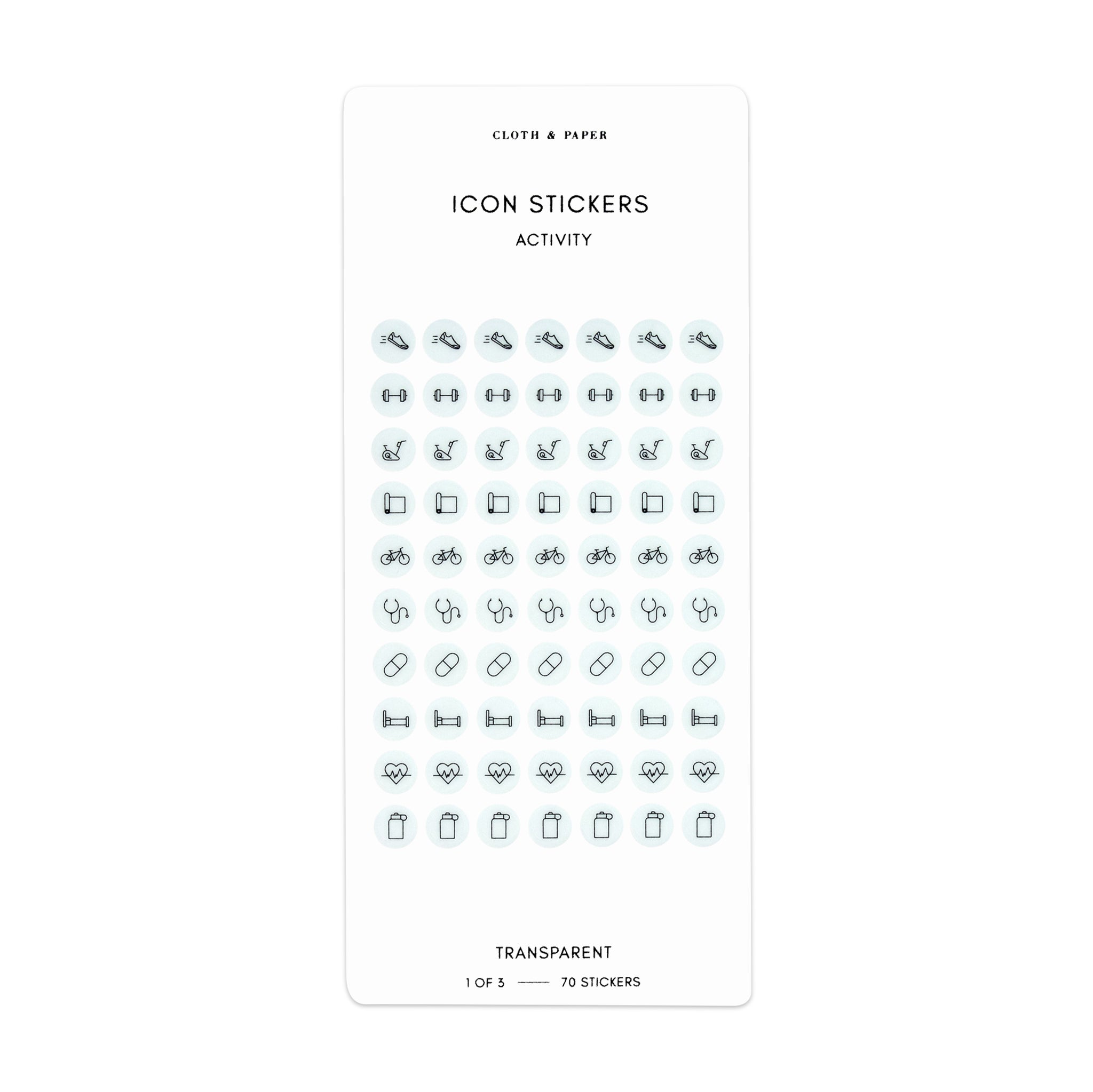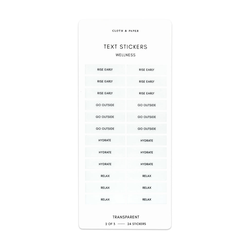 Icon sticker sheet from Wellness Stickers in Icons, Text and Drops against a neutral background.