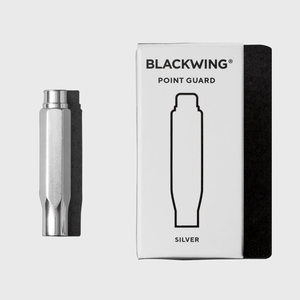 Blackwing point guard in lightweight aluminum, available in black or silver, designed to protect pencil tips from breakage.