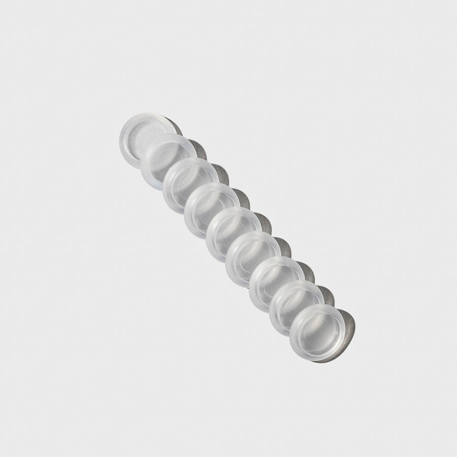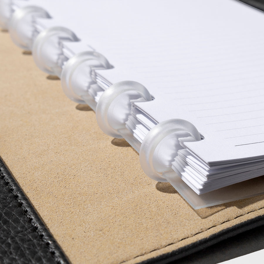 A set of 0.5 inch frosted clear planner discs, durable and lightweight, holding up to 50 sheets.