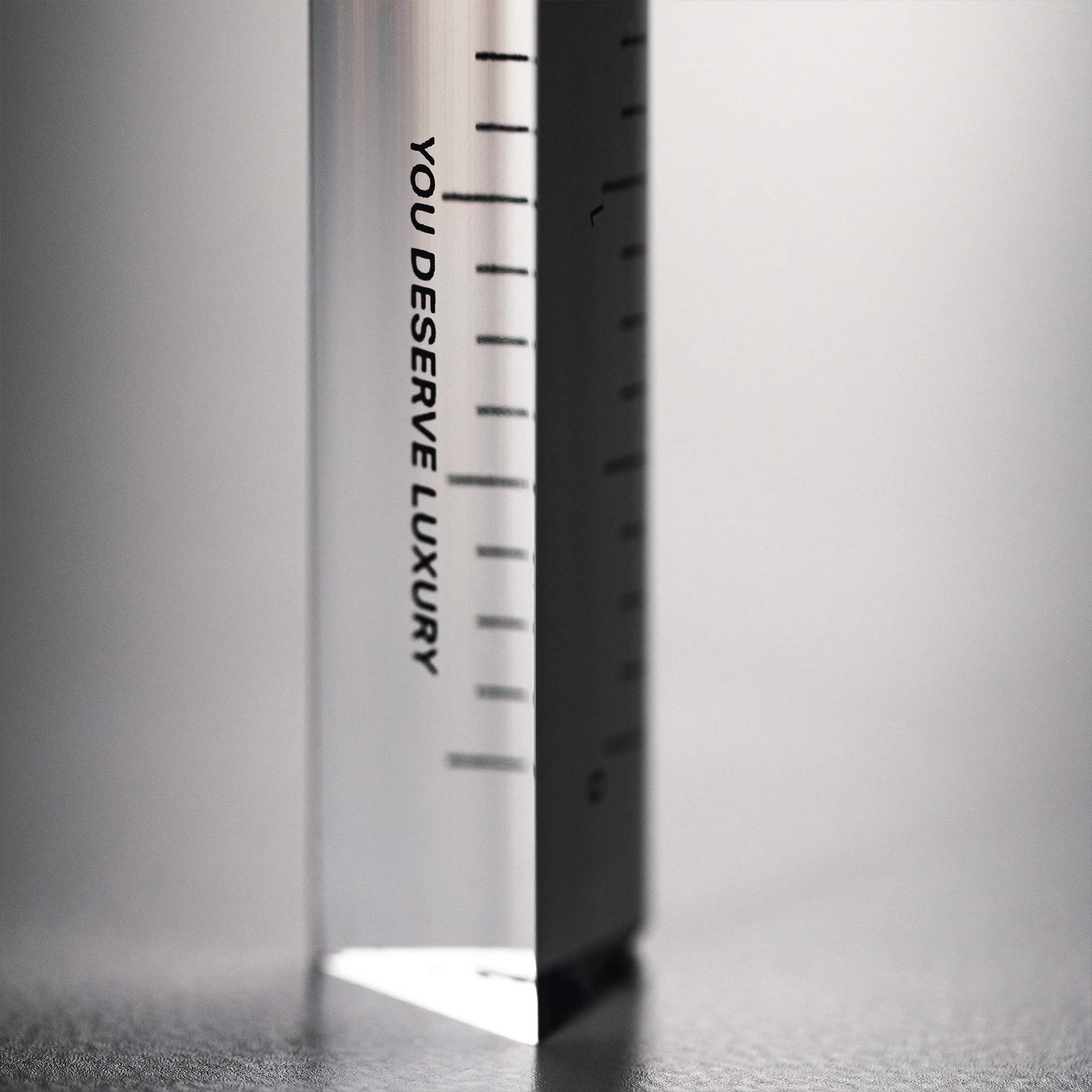 Acrylic straight edge ruler with a prism design for clear visibility of inch markings, combining minimal style with precision.