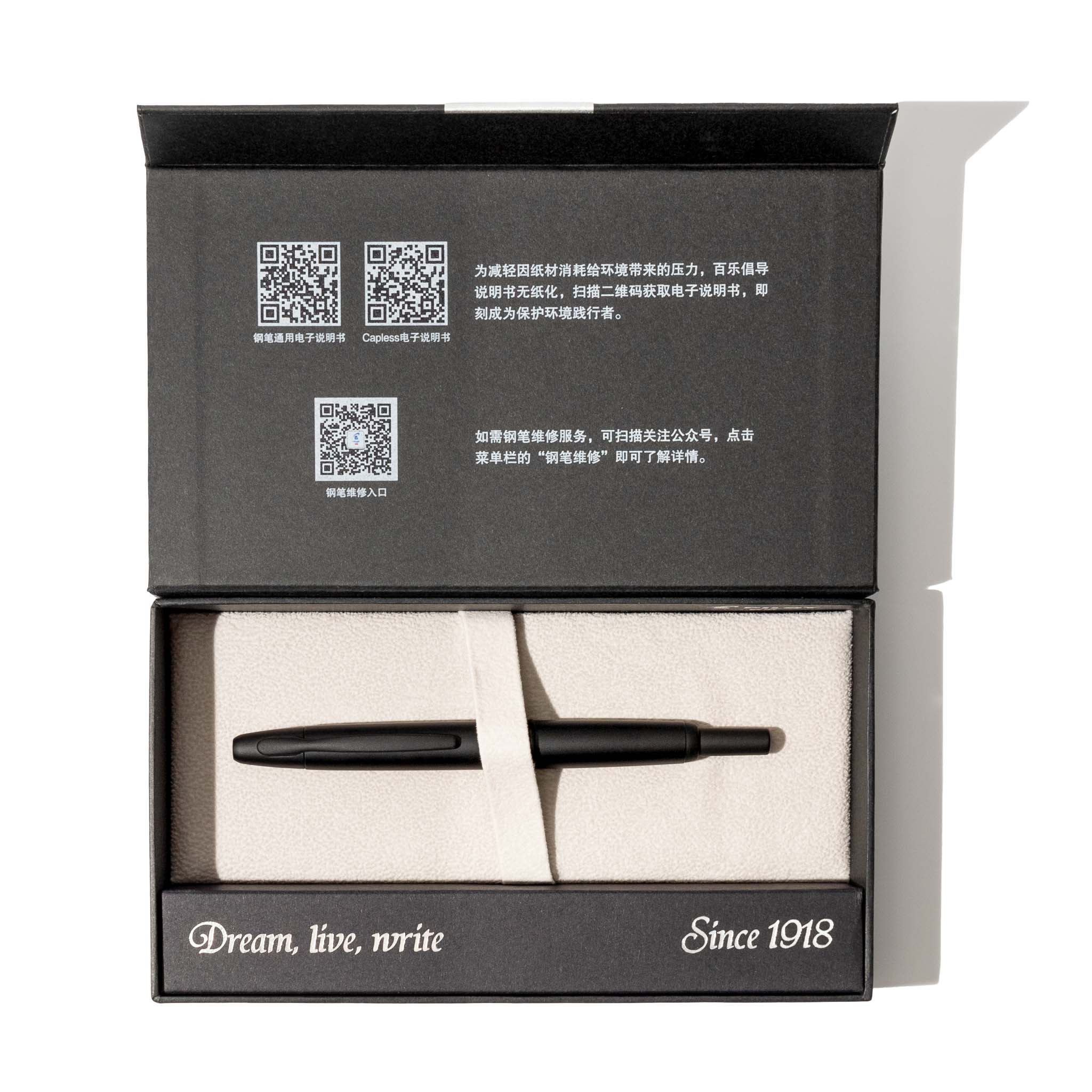 A capless fountain pen with a retractable fine nib and matte black body for refined writing.