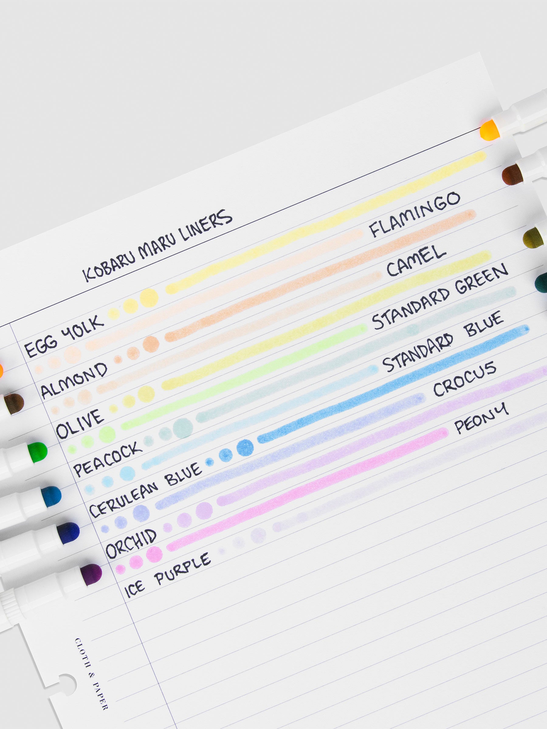 Kobaru Maru Liner, Almond, Cloth and Paper. Almond highlighter with tip exposed and cap posted to the end of its barrel on a neutral background.