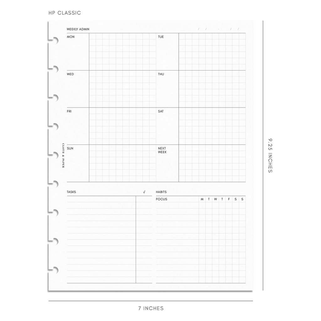 Inserciones del planificador de administración semanal | Lunes Inicio