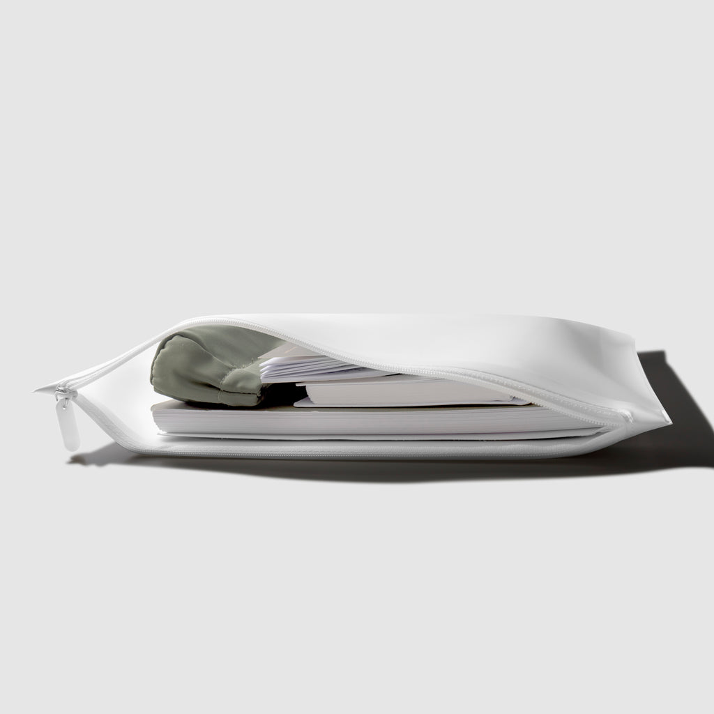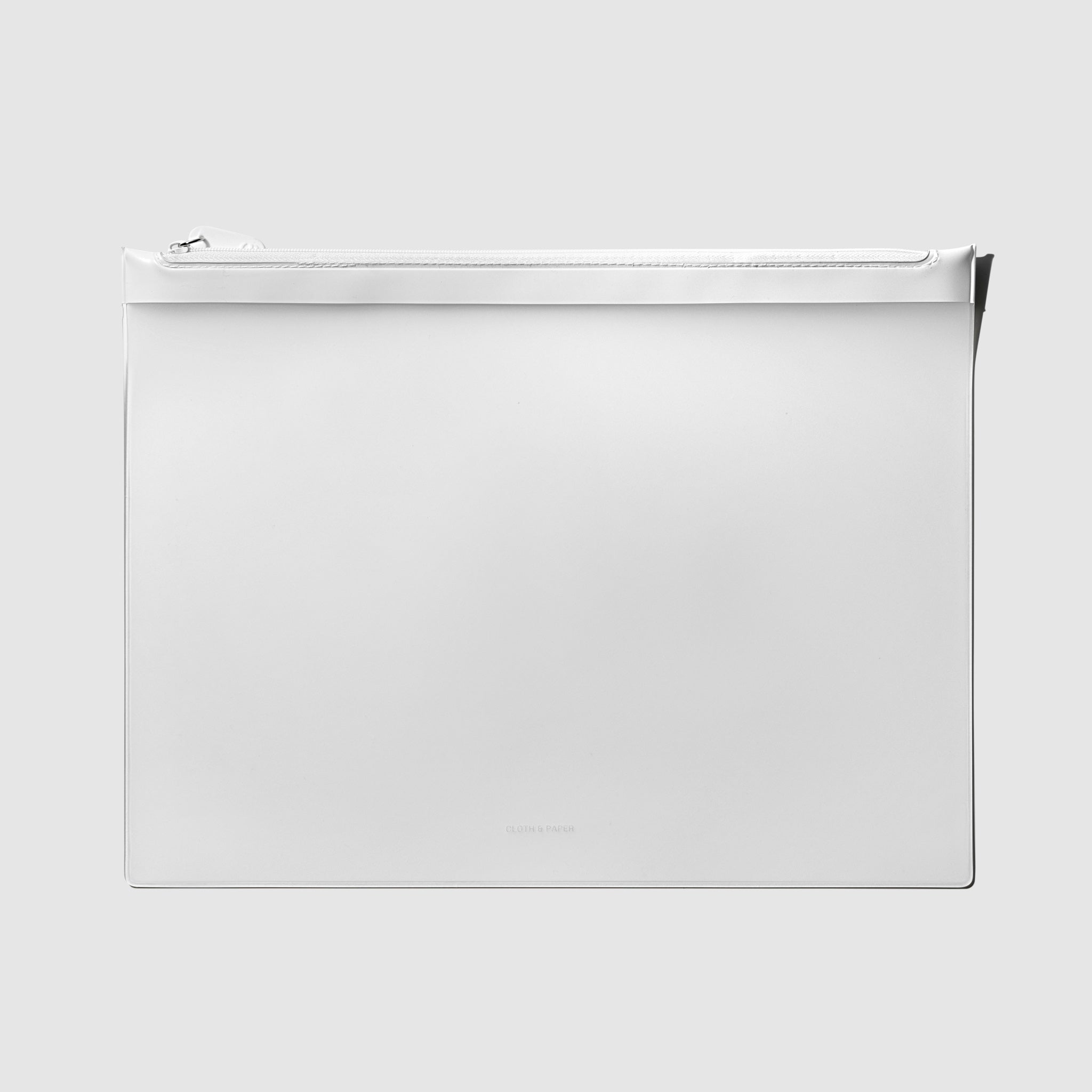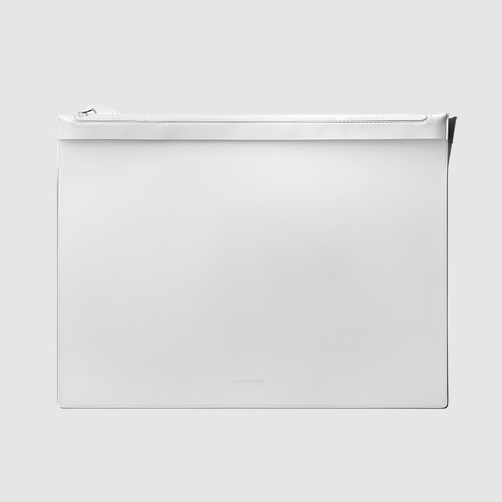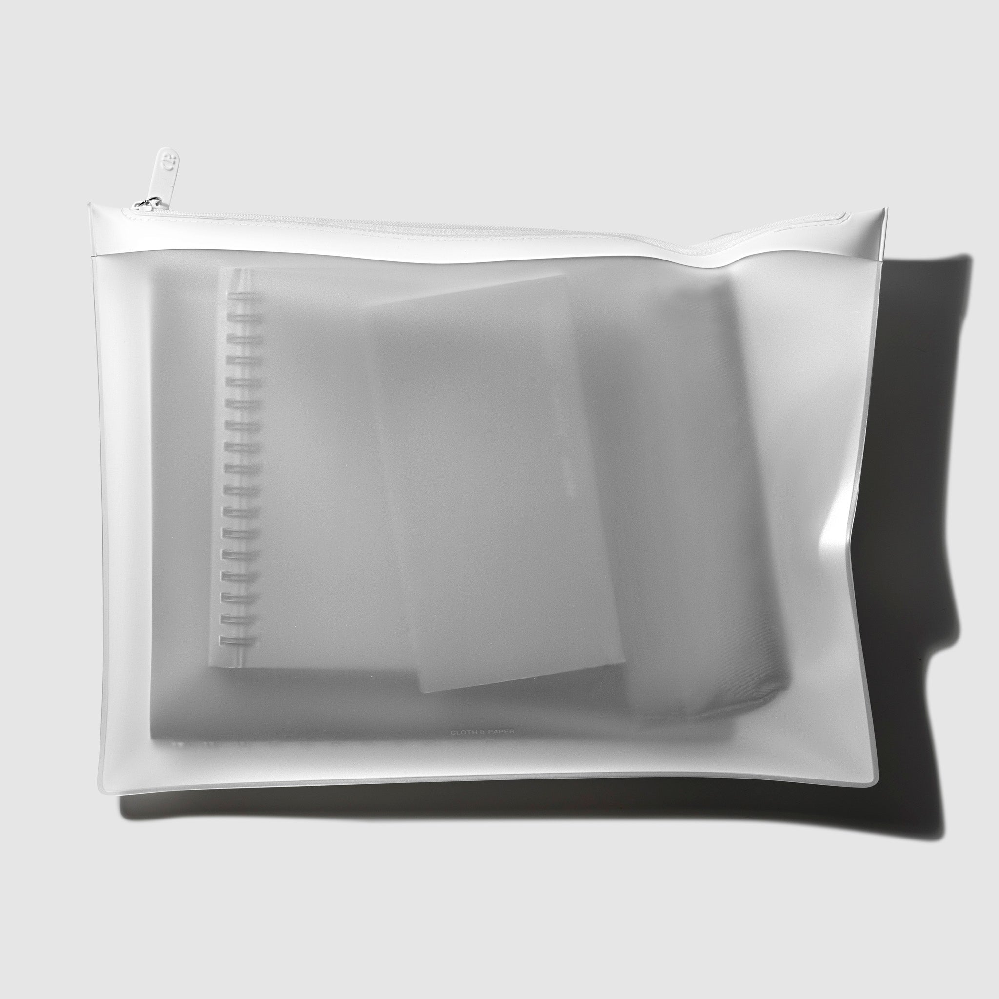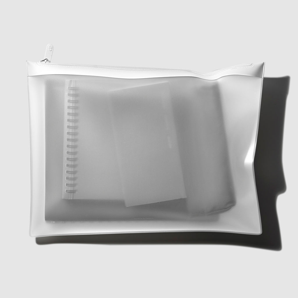 Set of two storage holders in clear vinyl with white and silver accents, featuring zipper closures for organizing accessories or planner supplies.