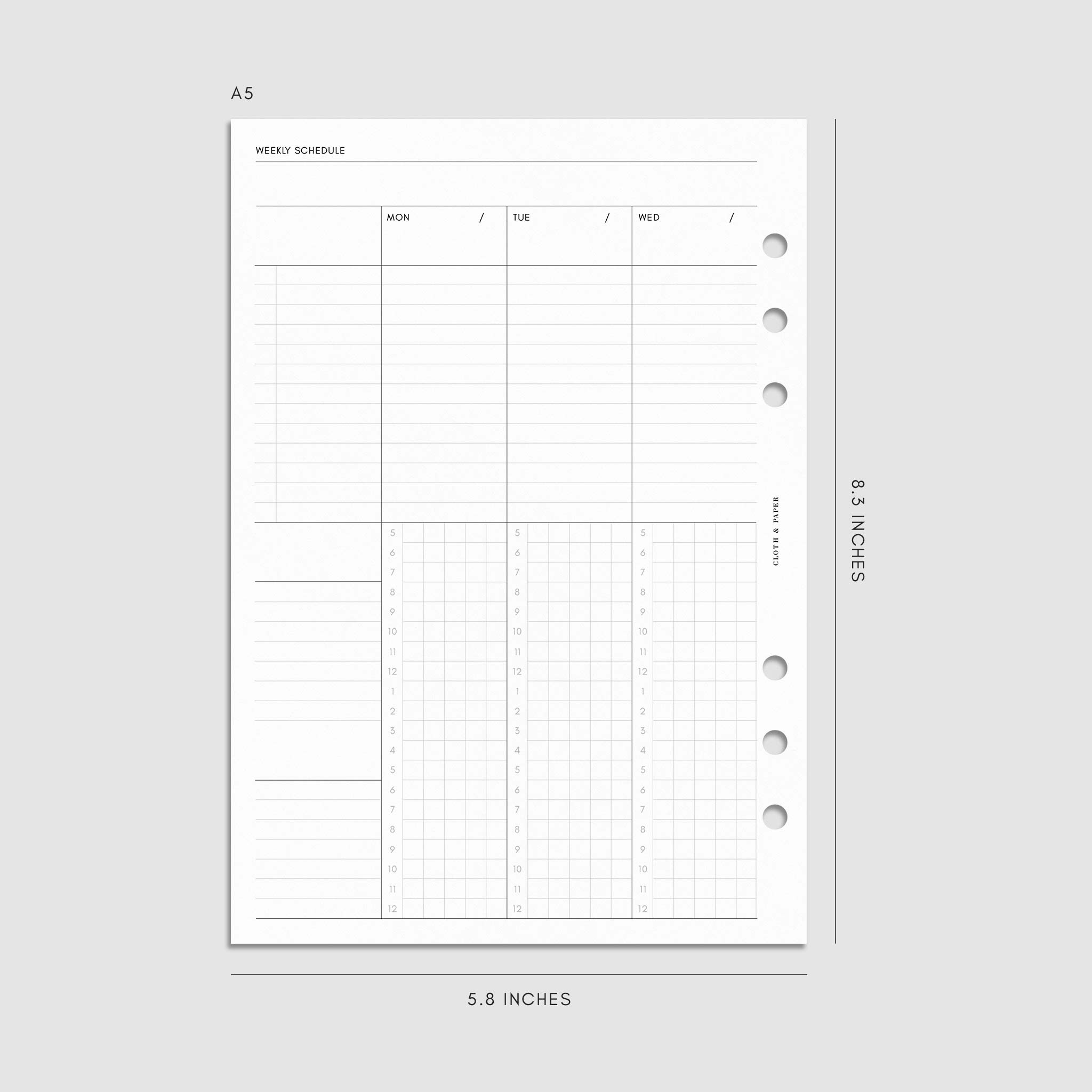 Inserciones de planificador de horario semanal | Lunes Inicio