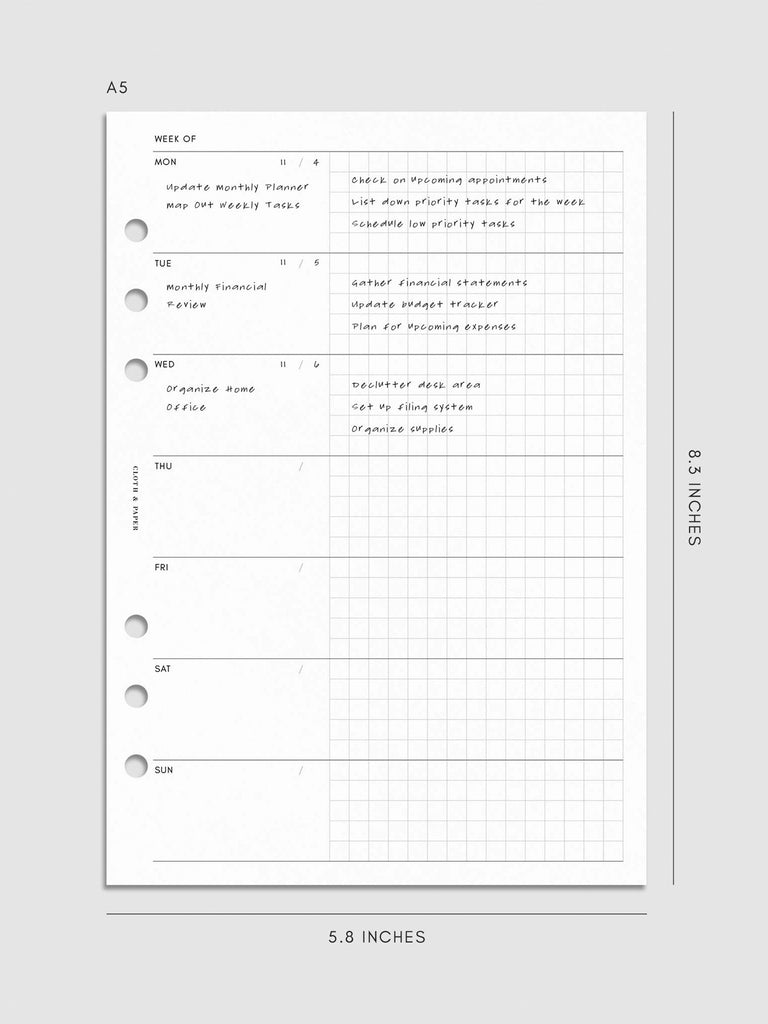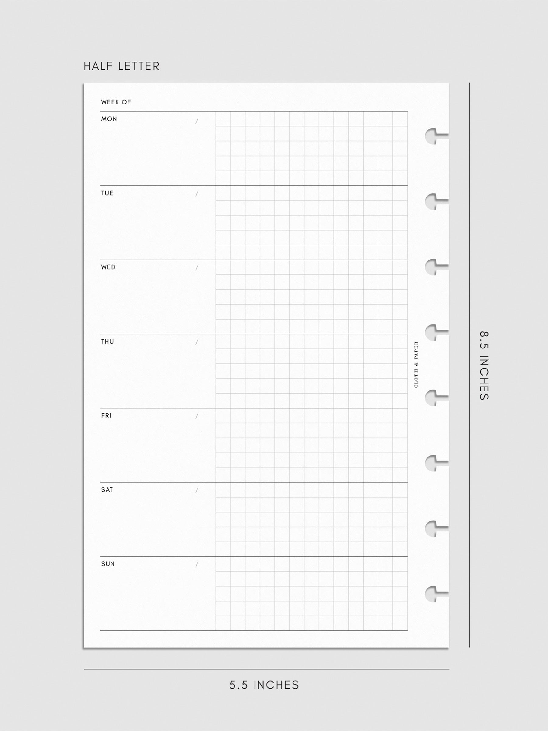 Hobonichi Style Weekly Layout Planner Inserts