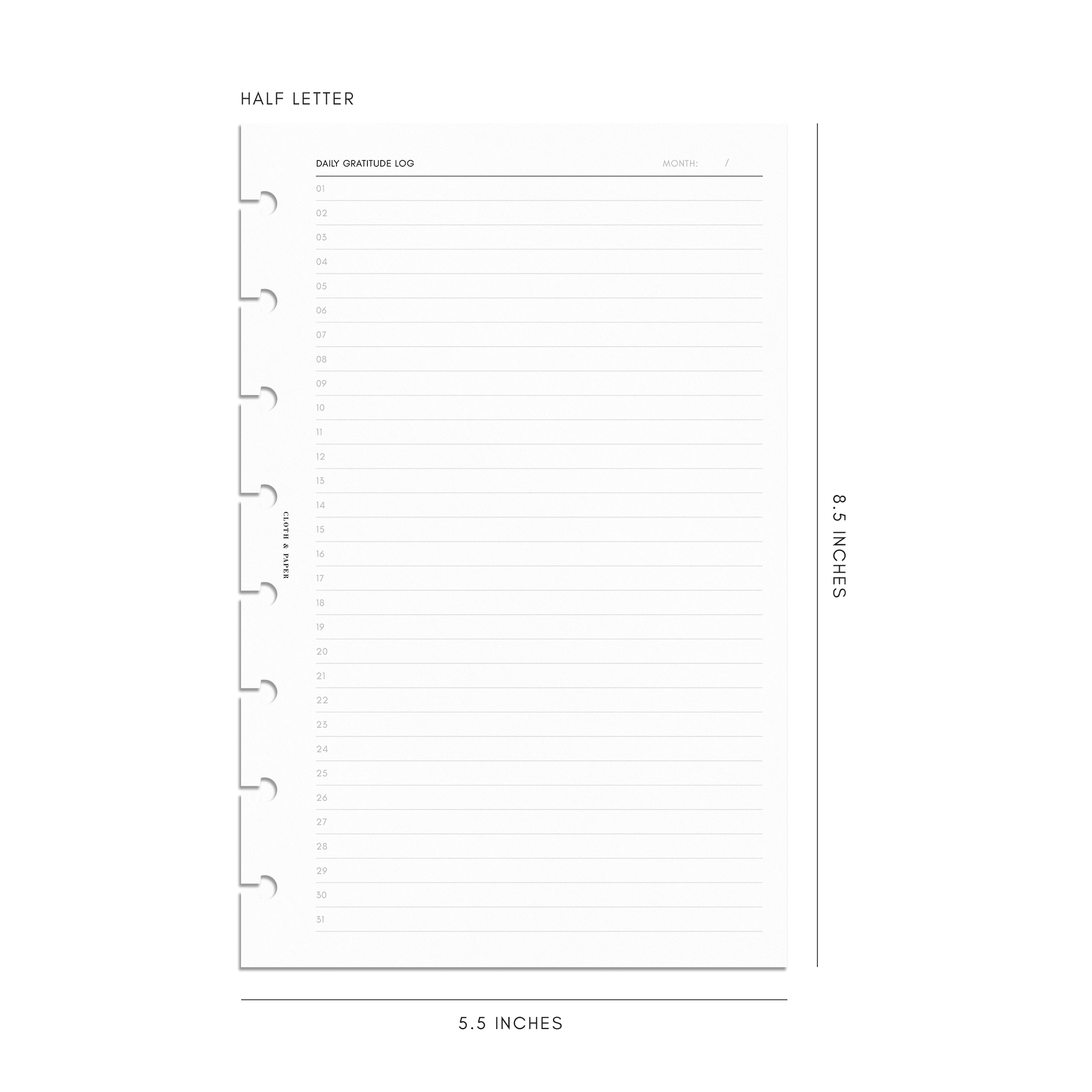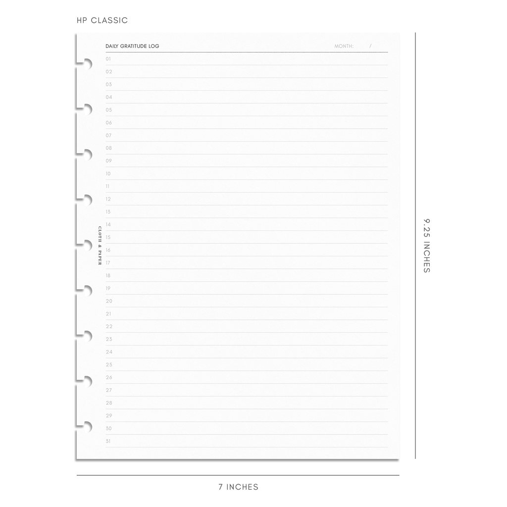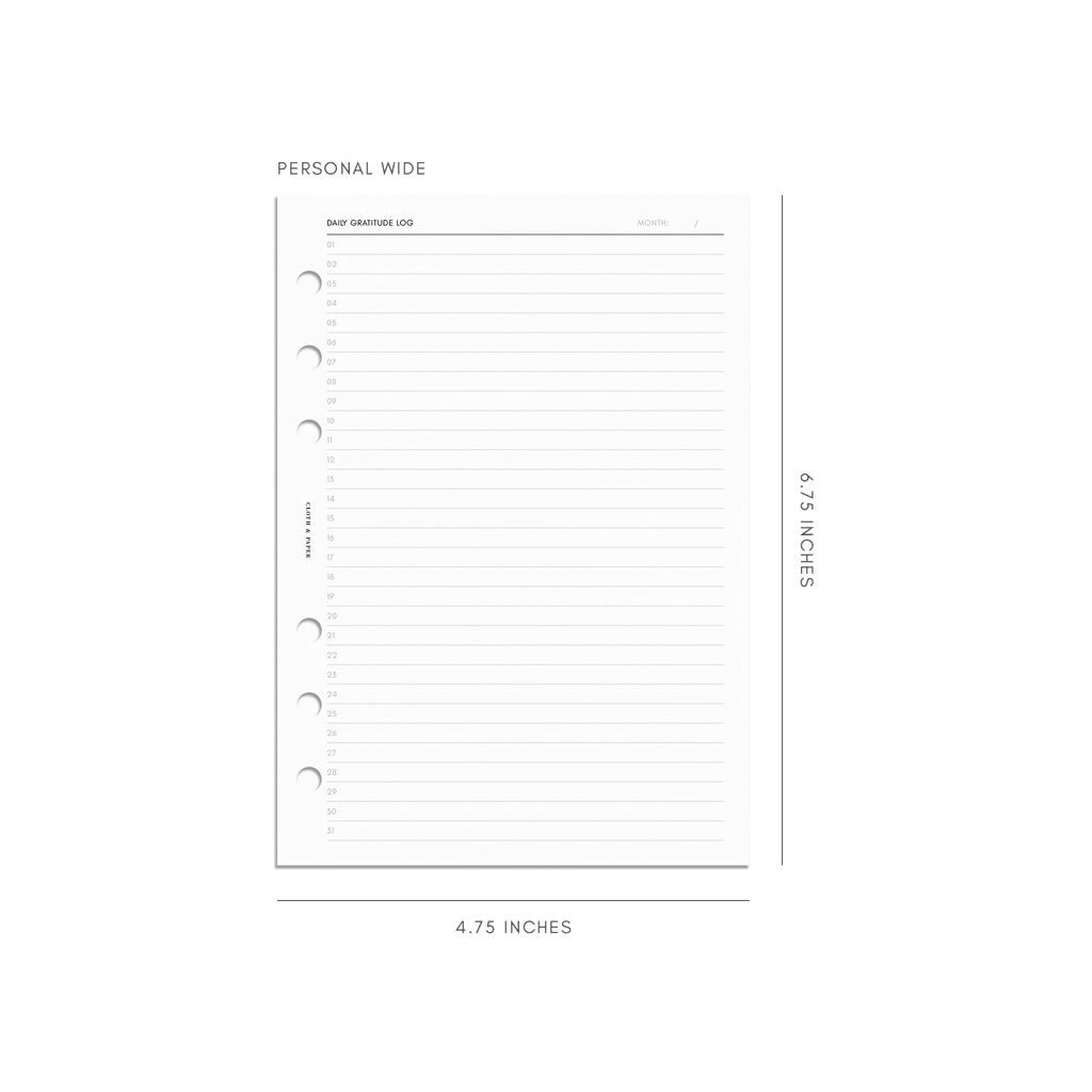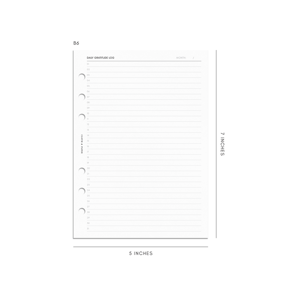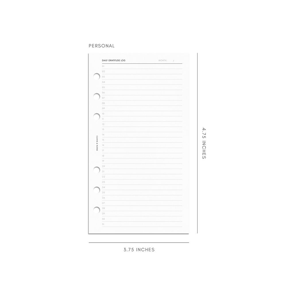 Daily Gratitude Log Planner Inserts