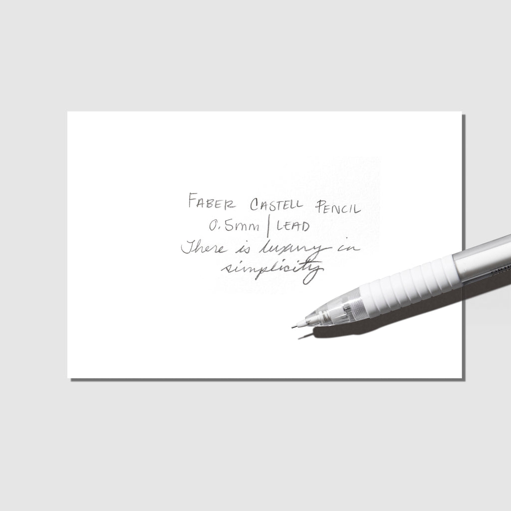 Faber-Castell Mechanical Pencil, Cloth and Paper. Pencil displayed on a neutral background.