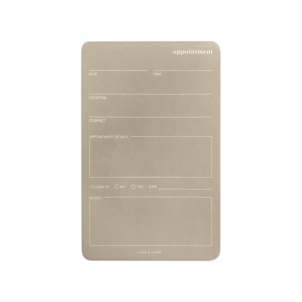 Perfect Bound Notebook | CP Petite | Undated Daily | Verona shown closed, laying flat, on a neutral background. Perfect Bound Notebook | CP Petite | Undated Daily | Verona shown open, laying flat, on a neutral background. Each page has a header for date, priorities, tasks, and schedule.