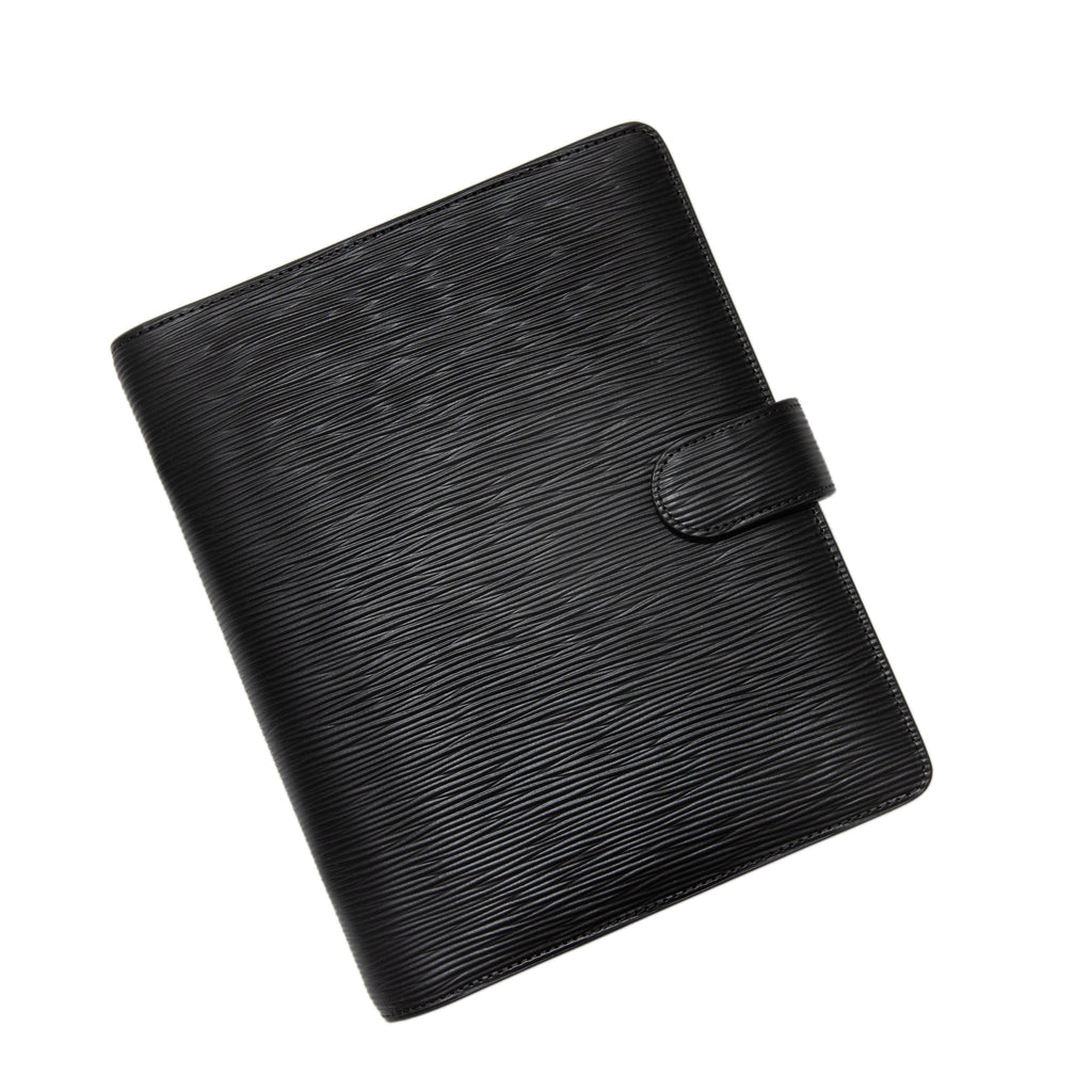 Velvet Pocket Folder in Bordeaux pre-punched for A5 planners. Velvet Pocket Folder in Bordeaux pre-punched for A5 planners shown in a black leather agenda.