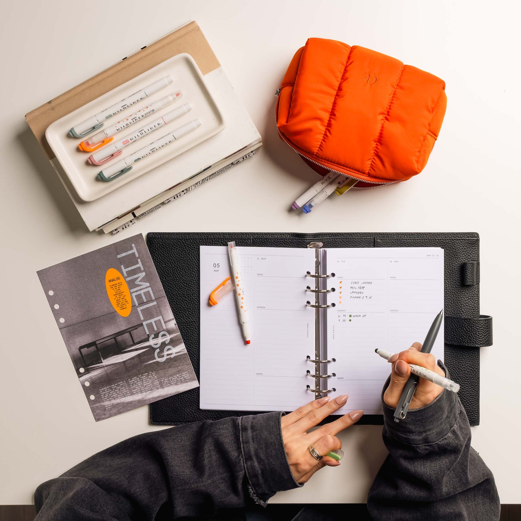 FORMA is our new pre-assembled, undated planner system designed for flexibility and everyday ease. With multiple layouts, matte transparent tabs, refillable discs, and ready-to-use inserts, it adapts to the way you plan.