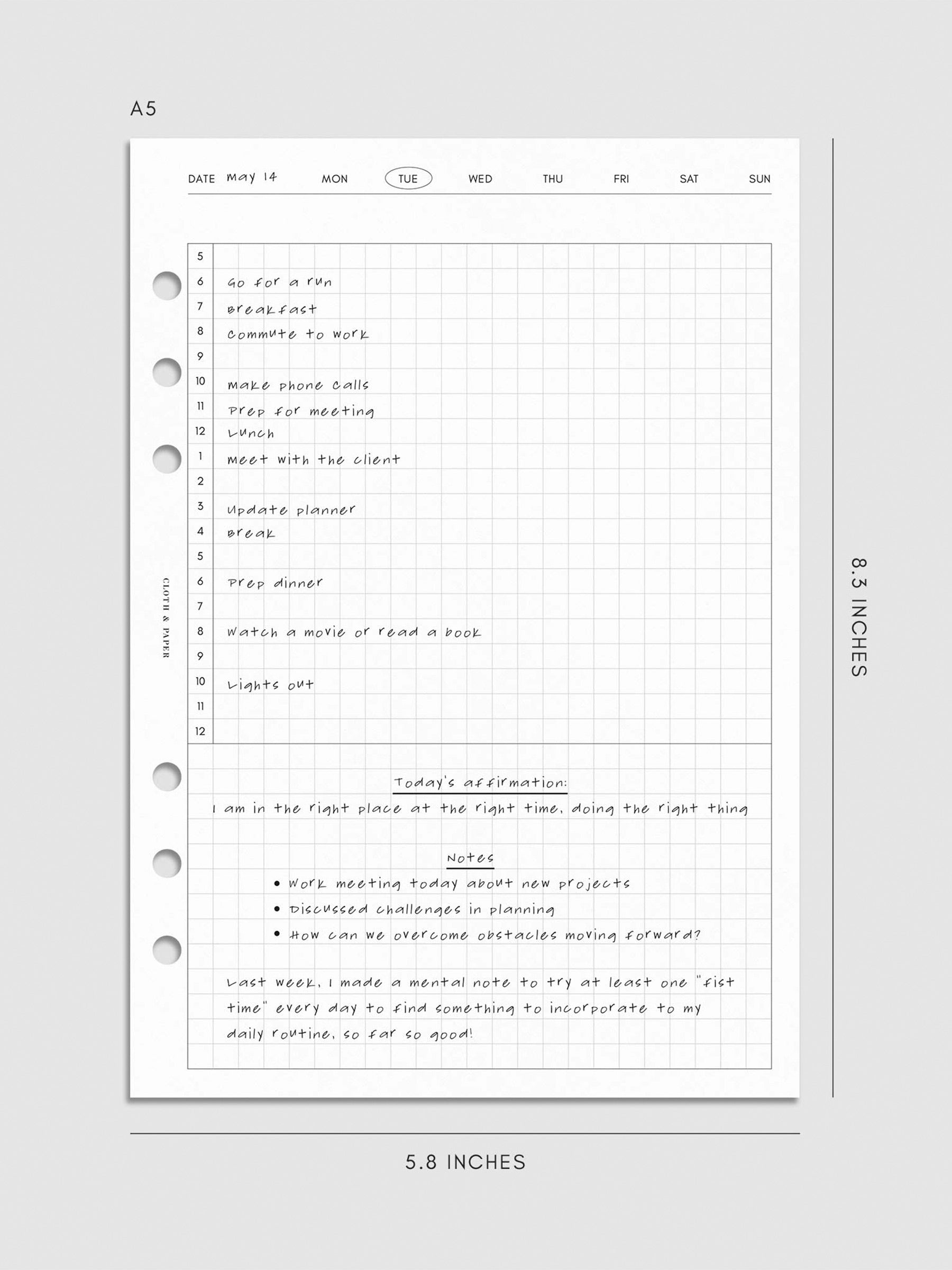Daily Agenda Graph Inserts | Undated Horizontal