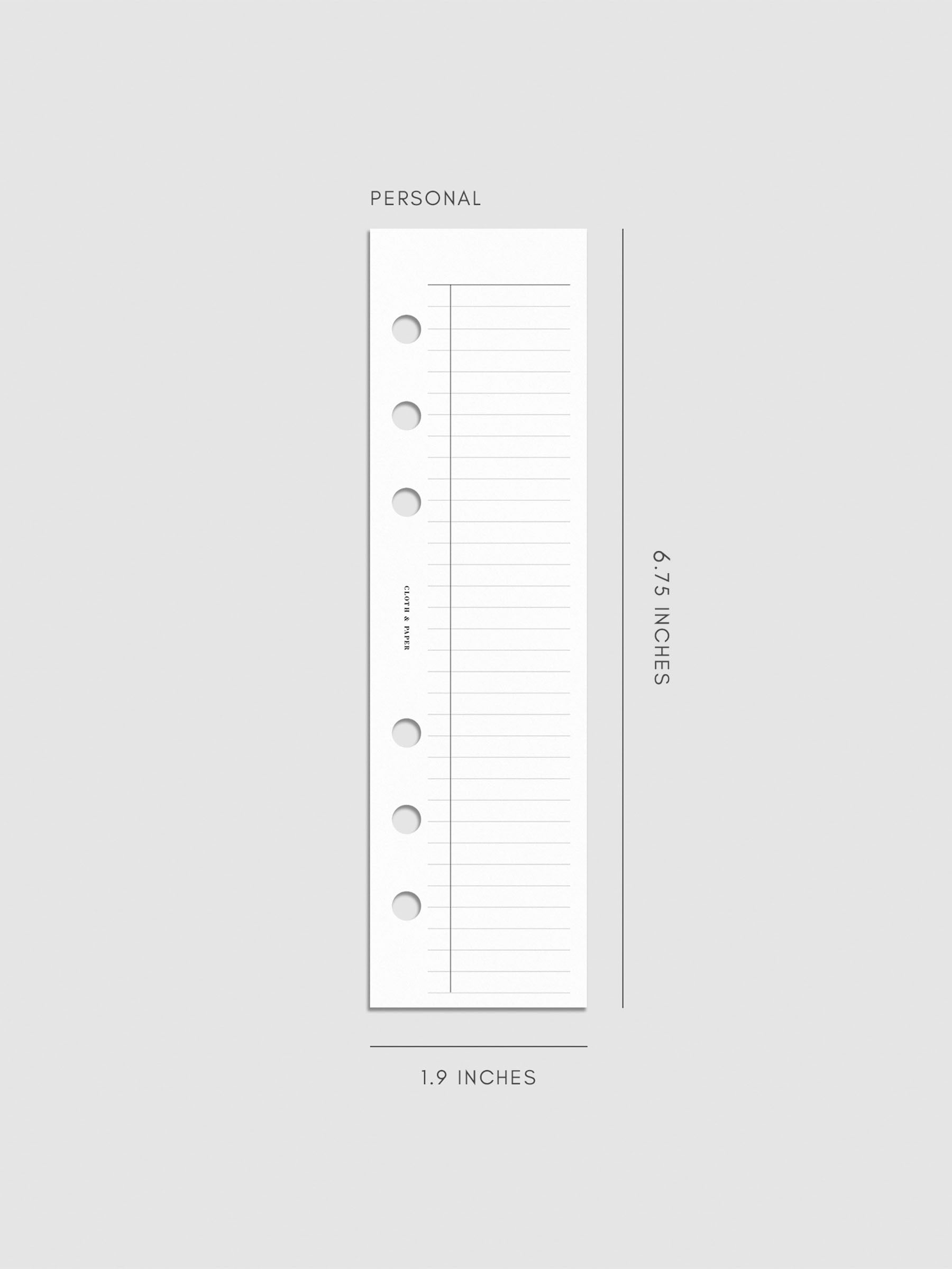Tuck one of our Half Page Task Inserts into your weekly spread for easy access. Whether it's a grocery list, to-do list, wish list, chores list, gratitude list, or something else entirely, this minimal design allows your plans to shine.