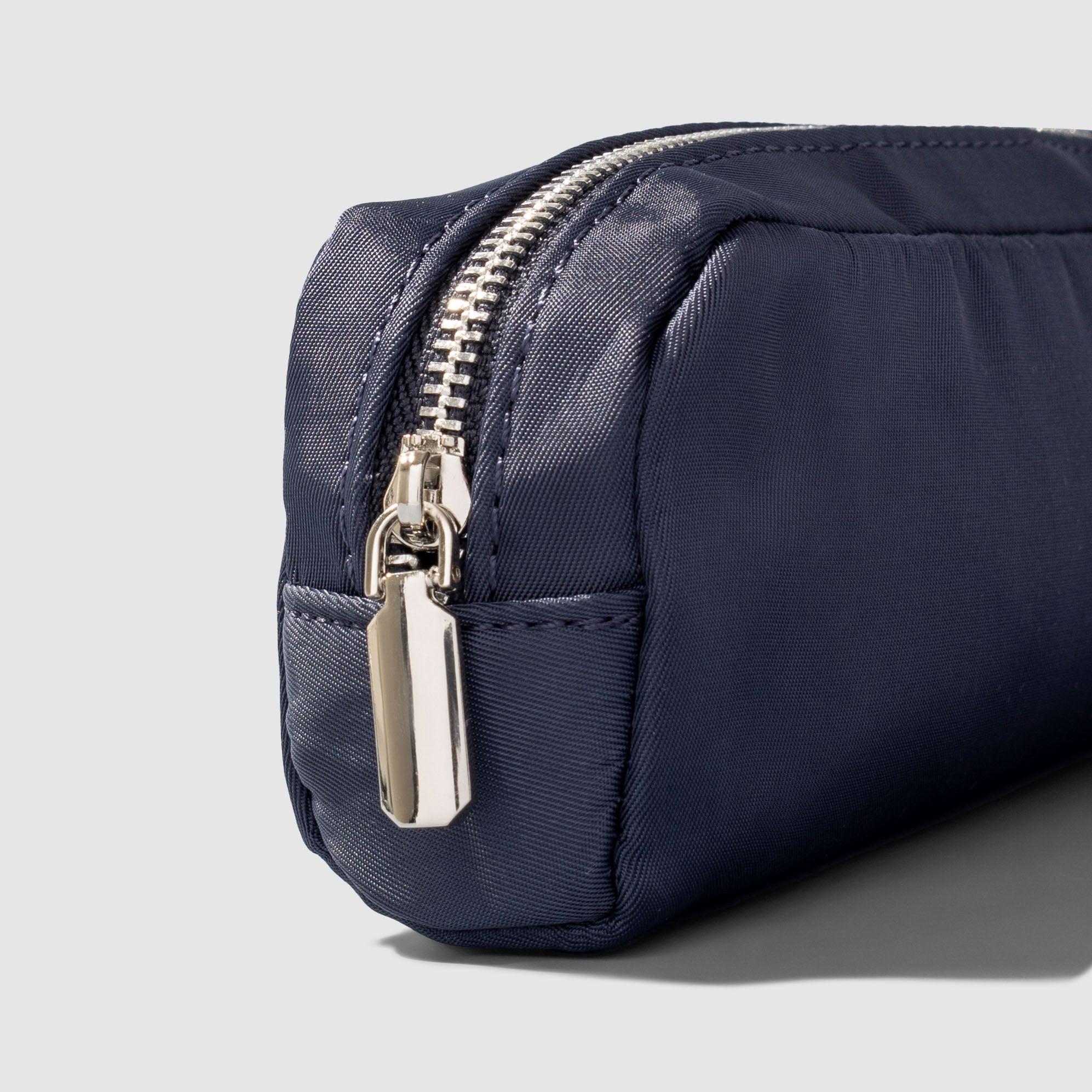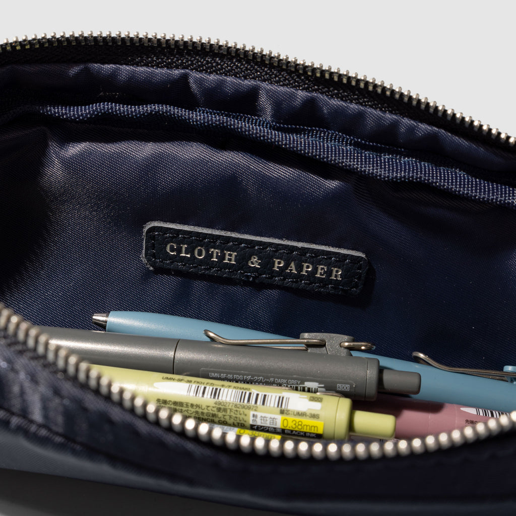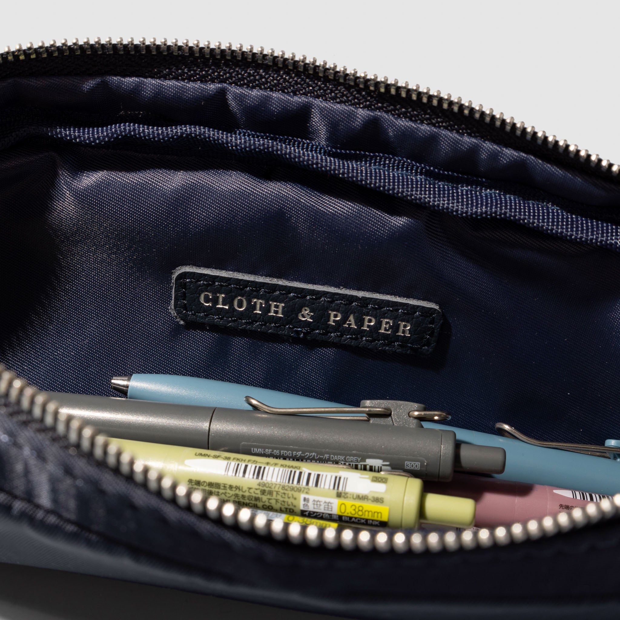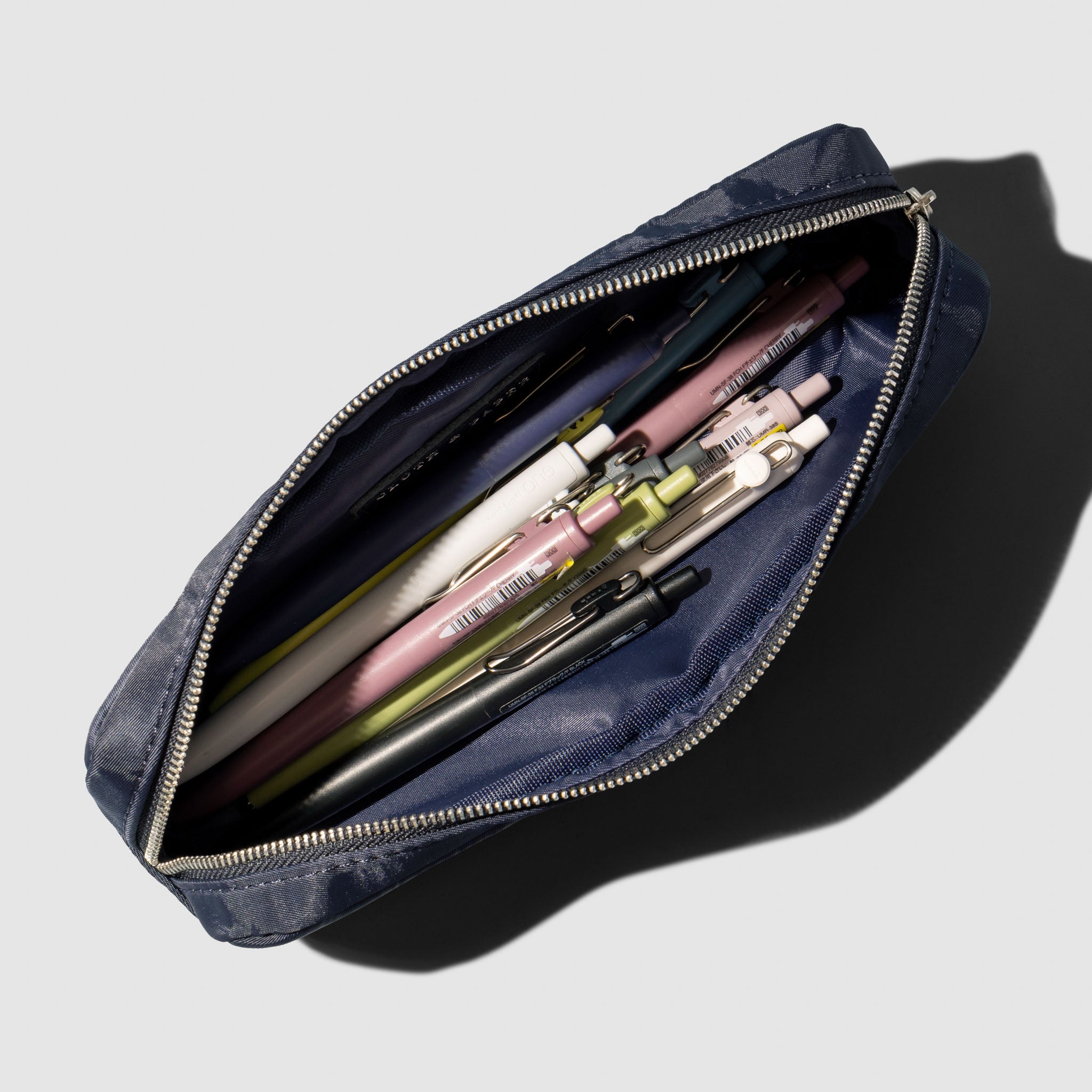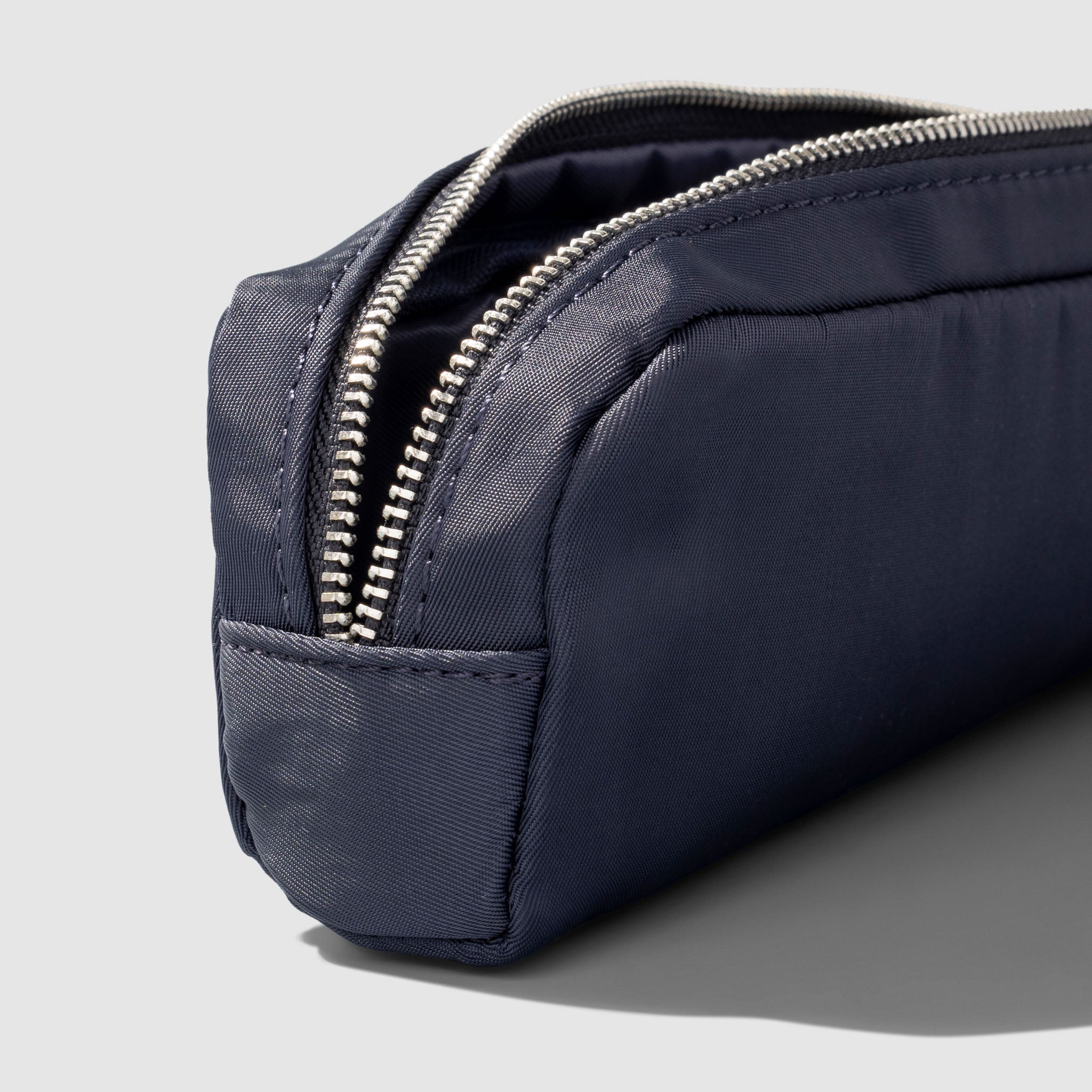 Nylon pencil pouch with a lined interior and silver zipper, offering ample space for pens, brushes, or travel essentials.