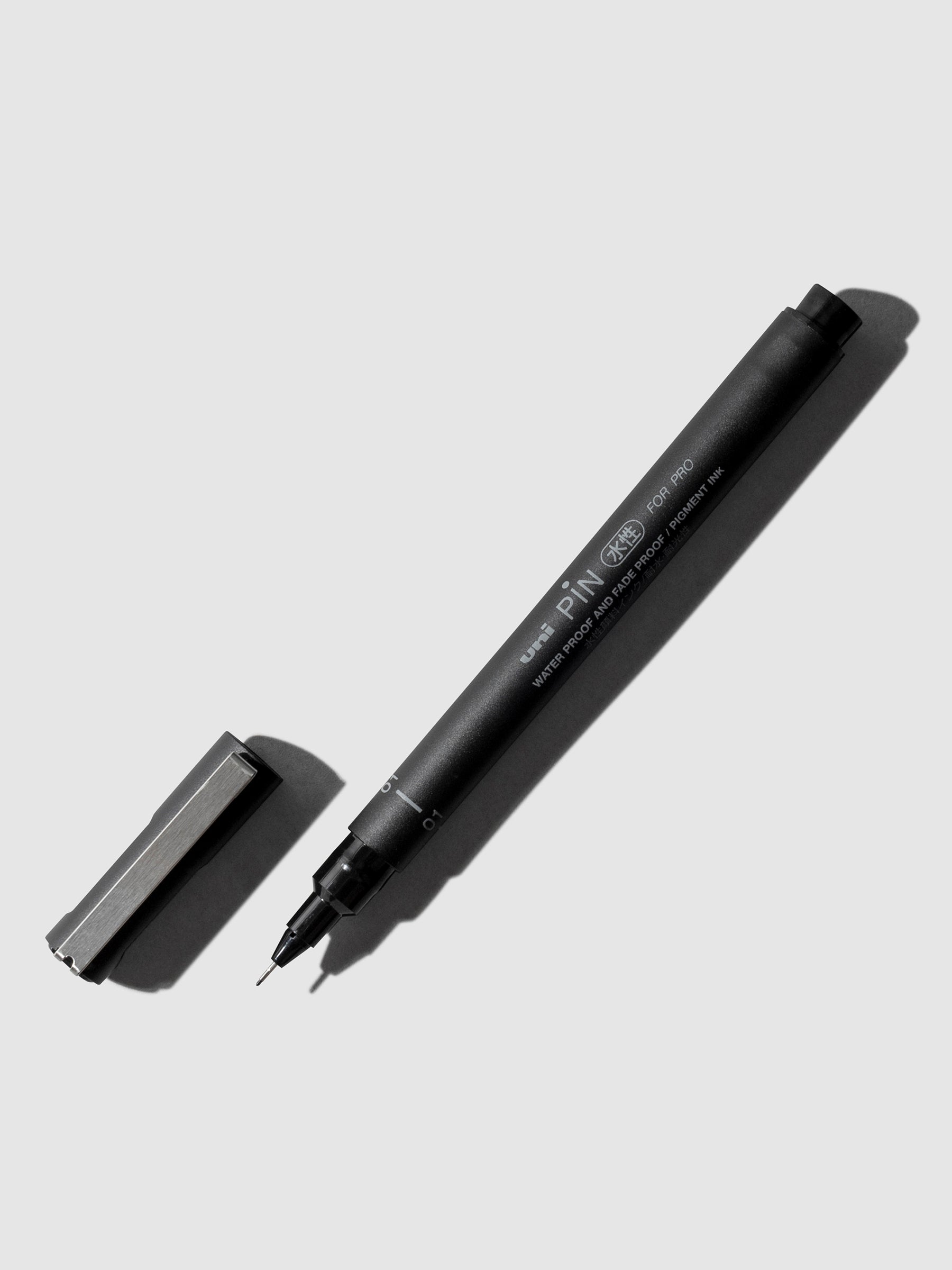 A fine line drawing pen with black pigment ink and a 0.24 mm needle tip for bold, precise strokes.