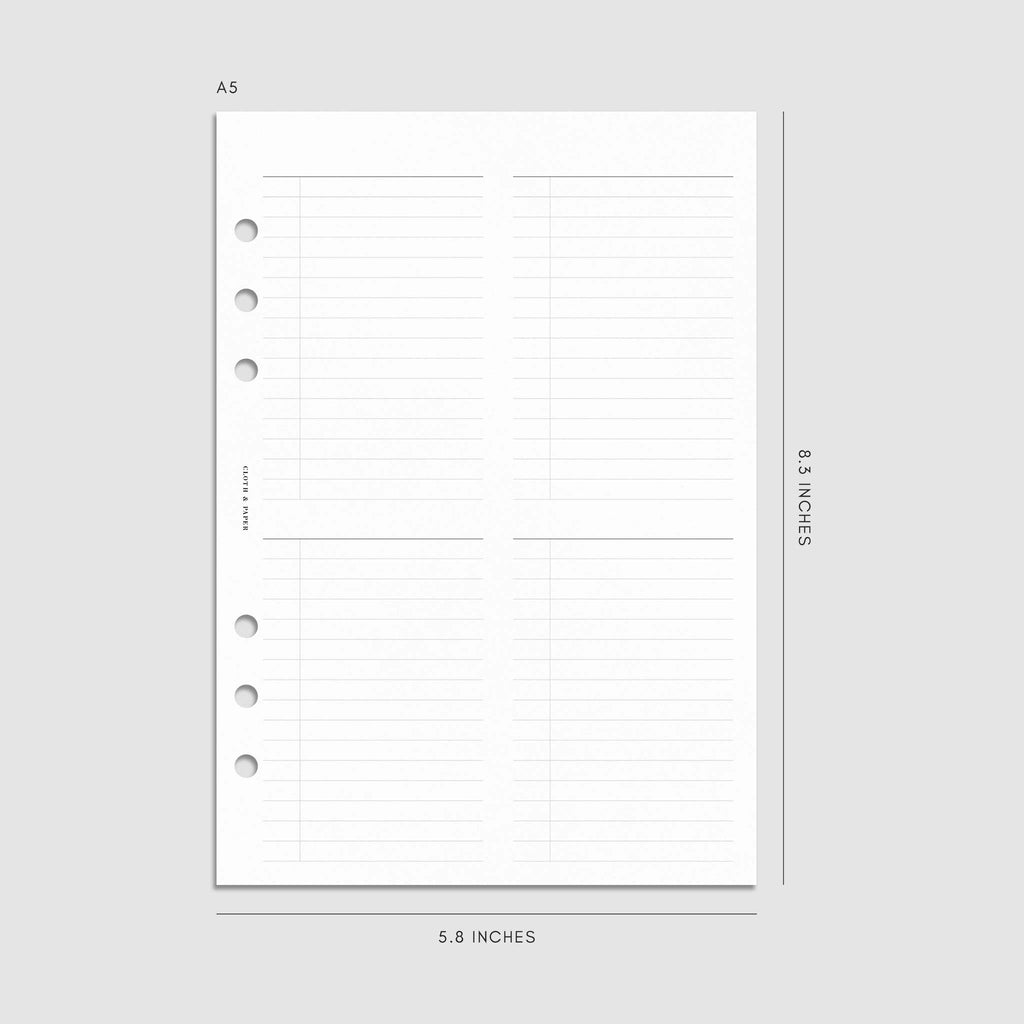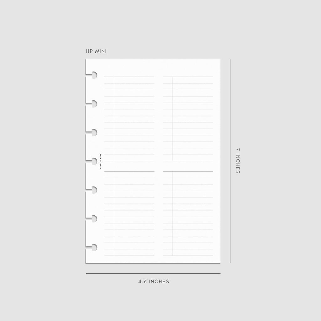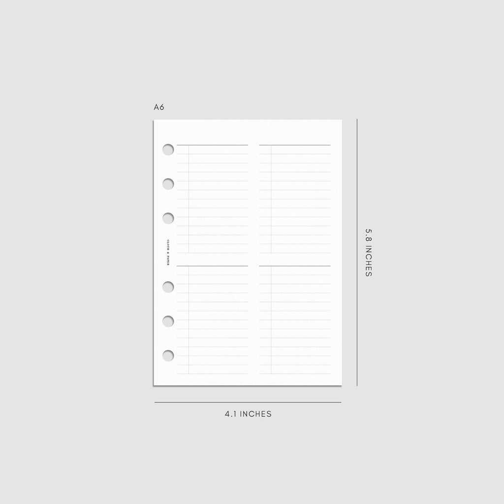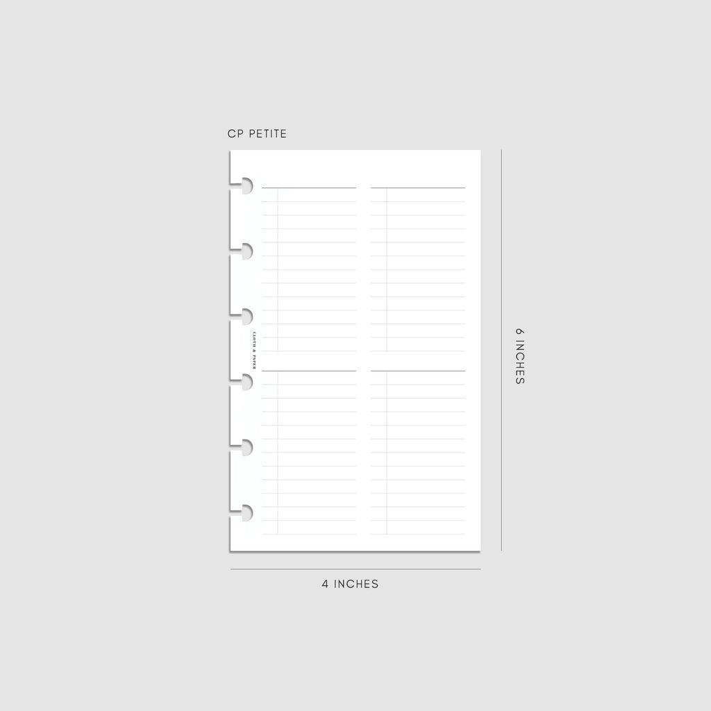 A planner insert with an undated layout featuring four customizable checklists per page for flexible task management.