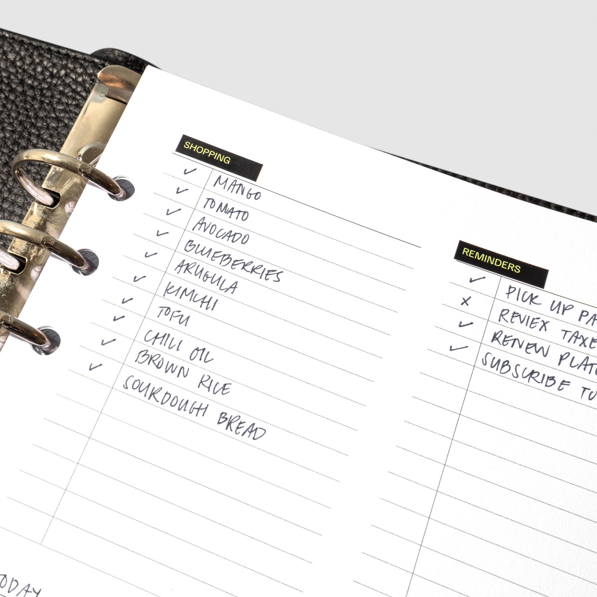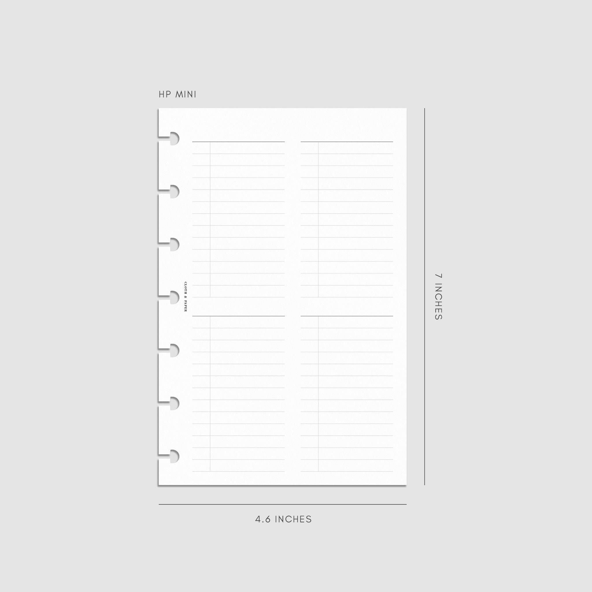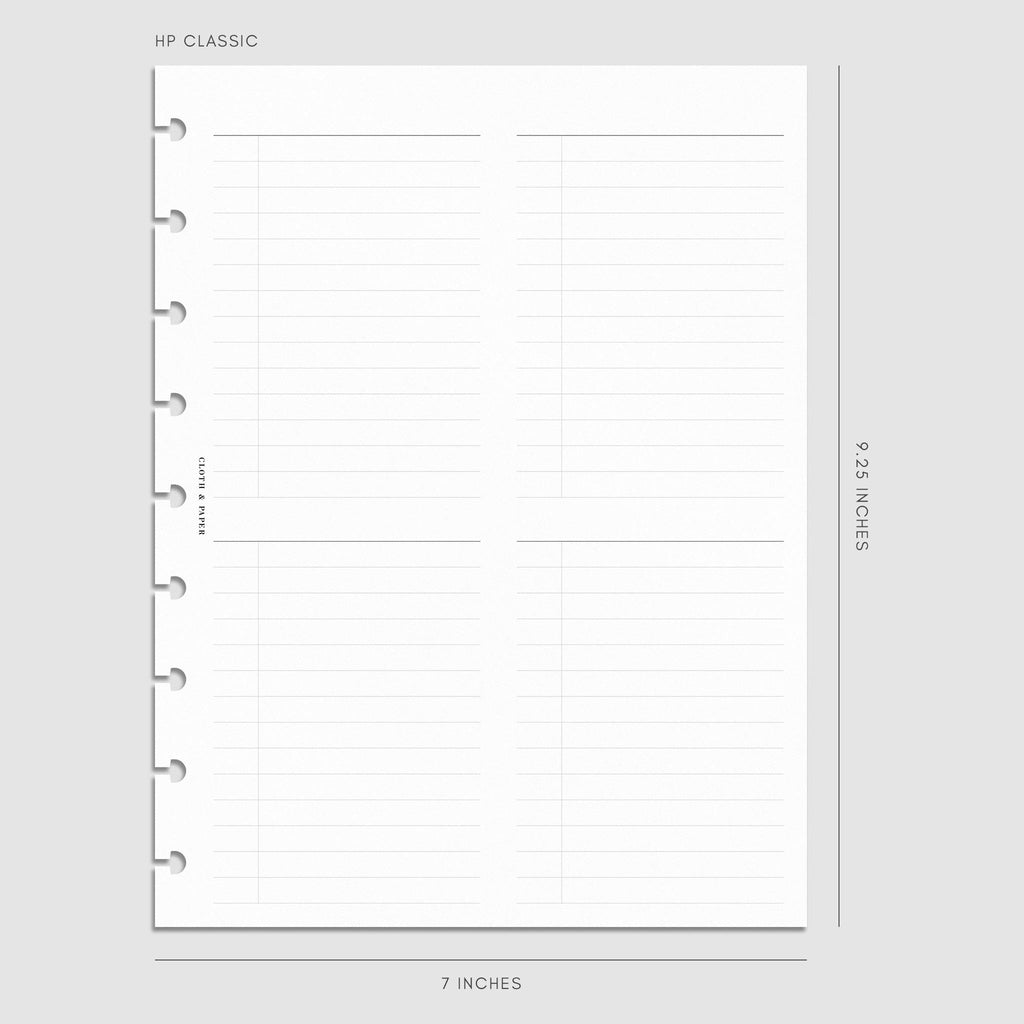 A planner insert with an undated layout featuring four customizable checklists per page for flexible task management.