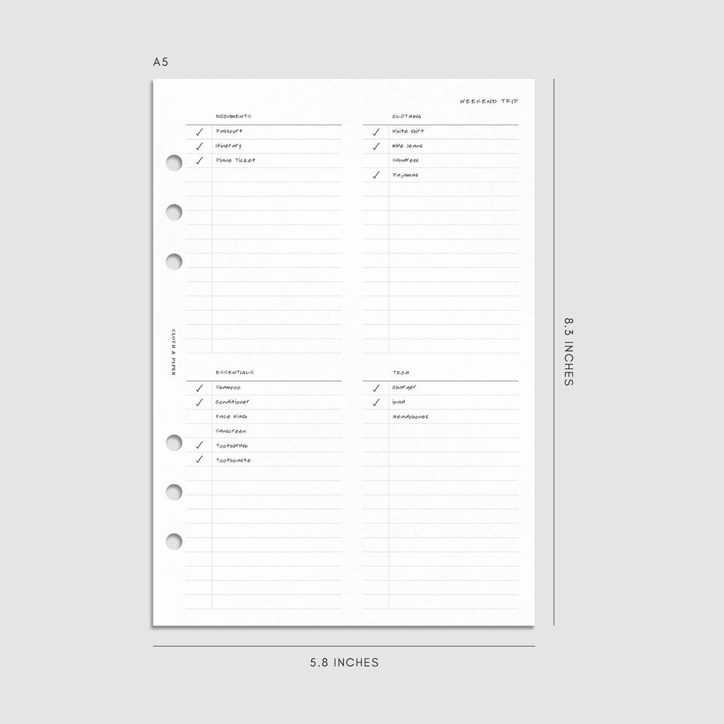 Checklist Planner Inserts