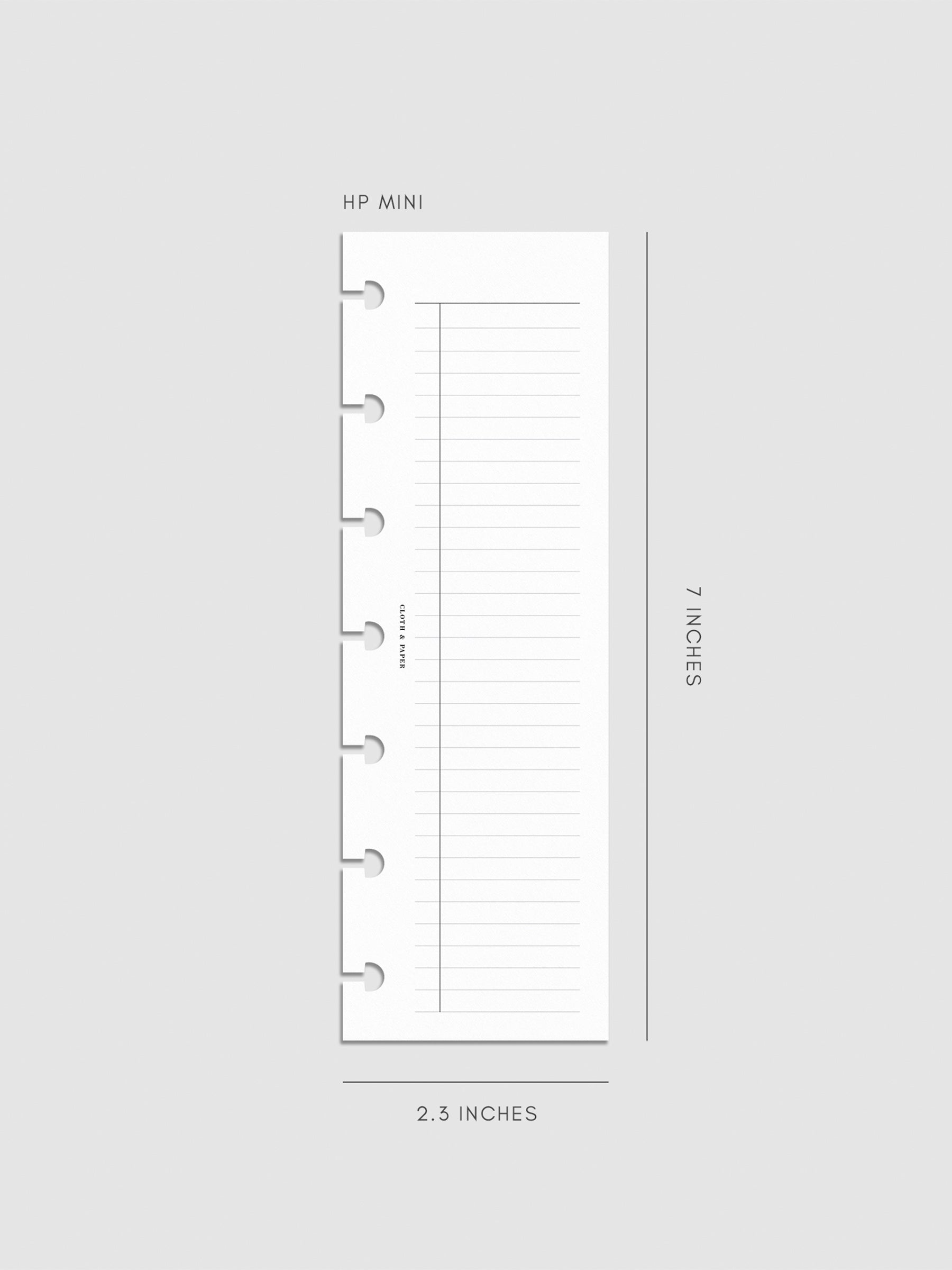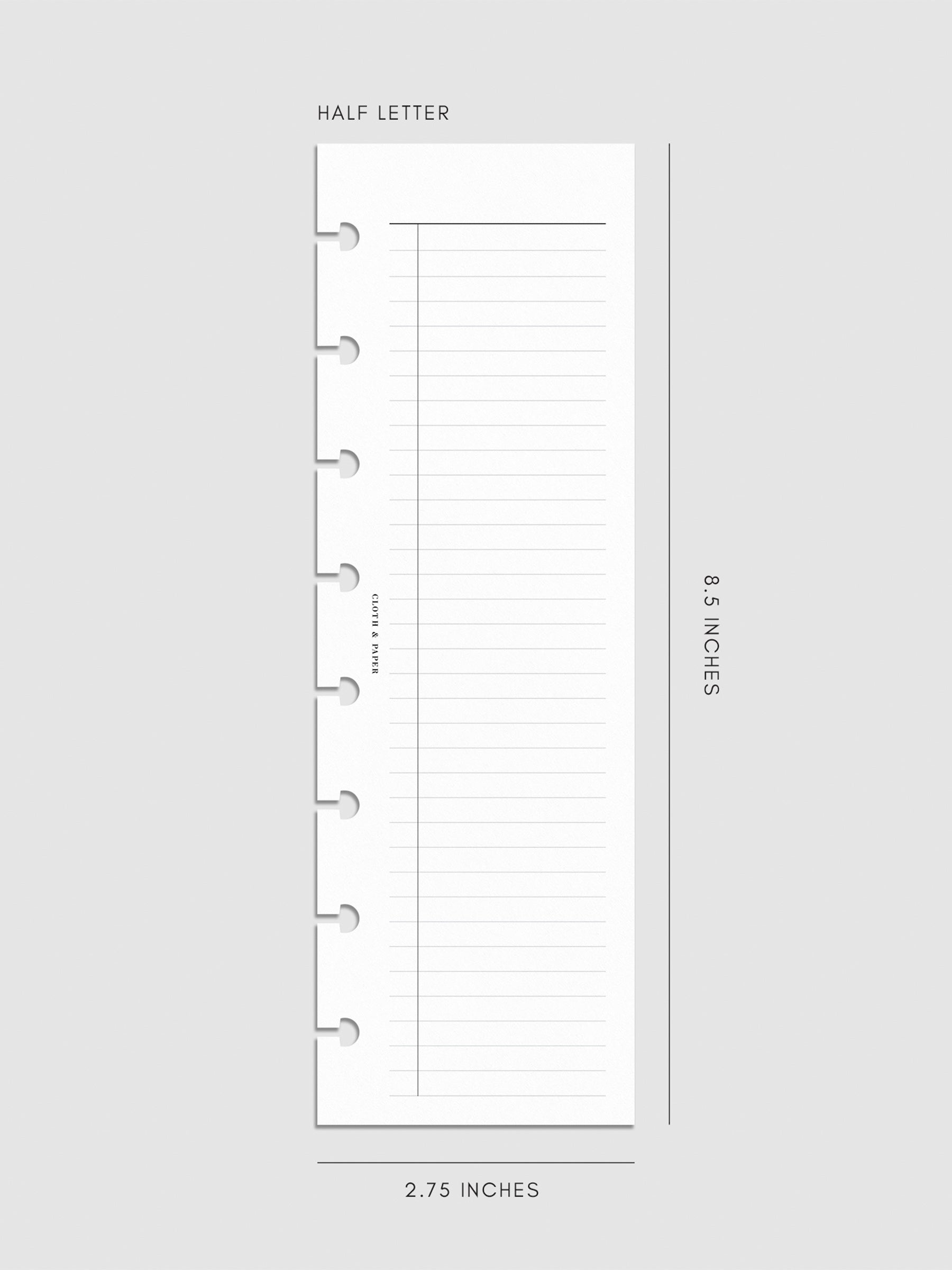 Tuck one of our Half Page Task Inserts into your weekly spread for easy access. Whether it's a grocery list, to-do list, wish list, chores list, gratitude list, or something else entirely, this minimal design allows your plans to shine.