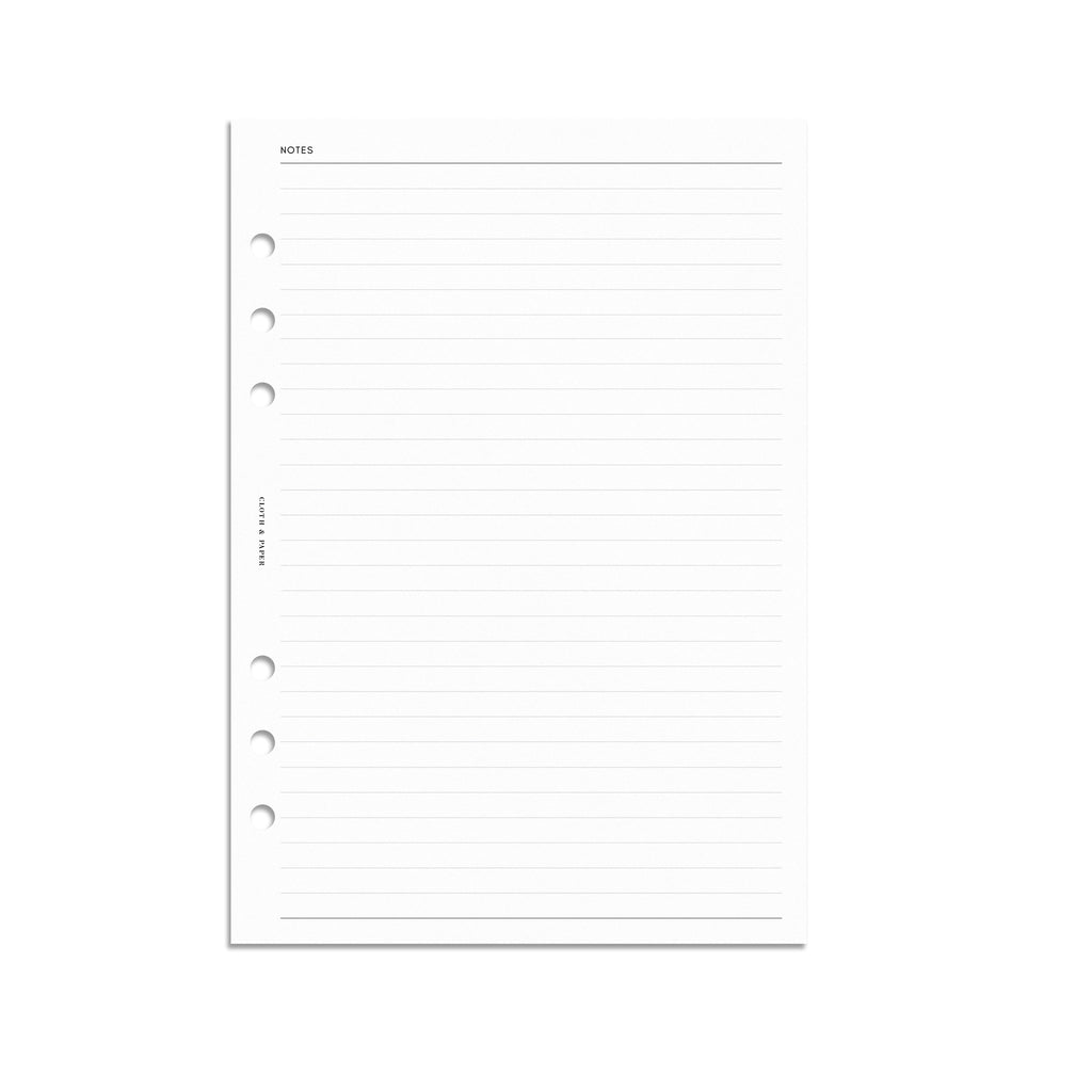 Digital mockup of insert in A5. Image shows the Monday Start 2026 Dated Daily Planner Insert in a black leather ring-bound planner.