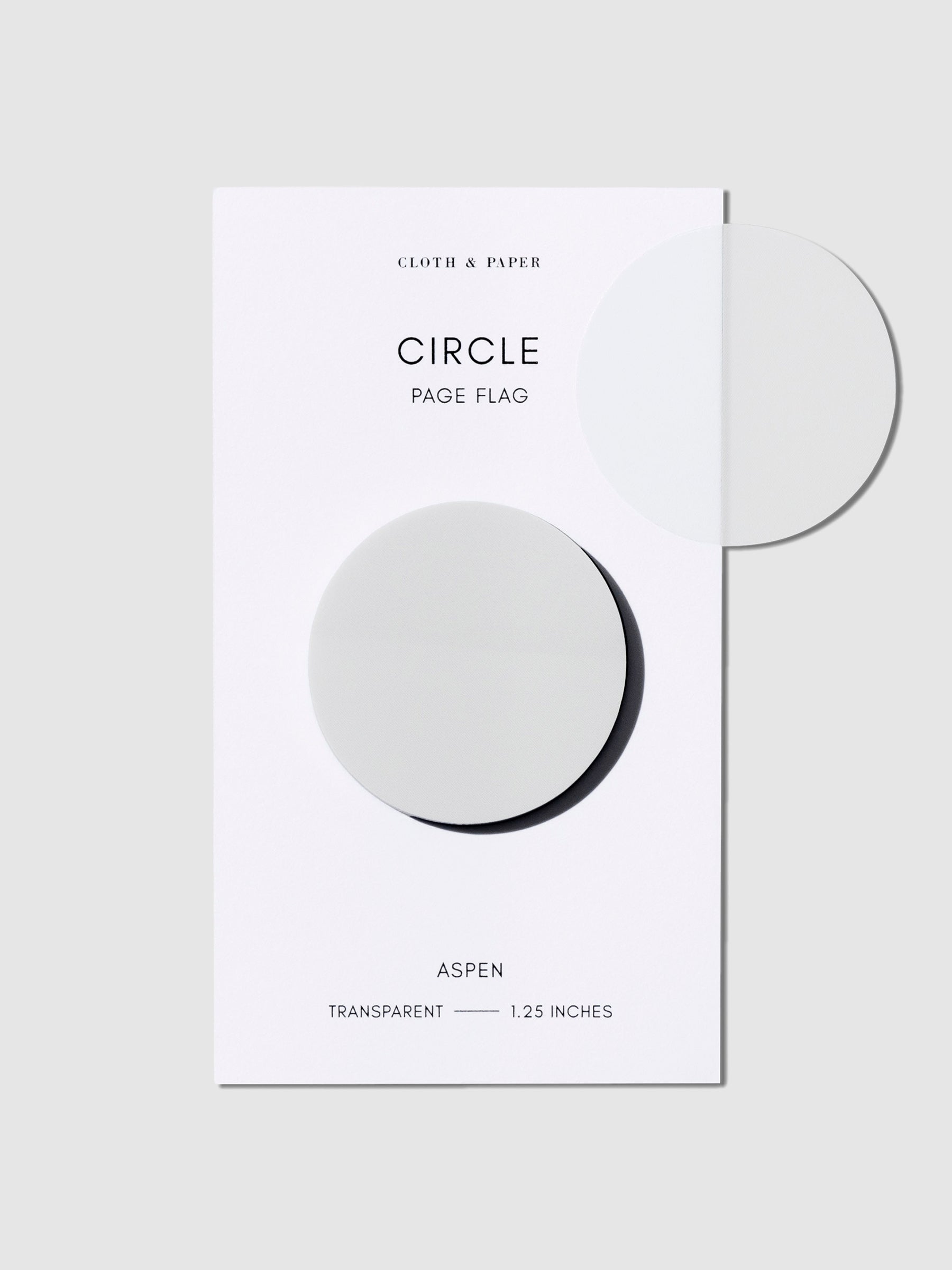 Circle page flags in transparent Aspen, offering a minimal way to highlight dates or draw attention to key tasks.