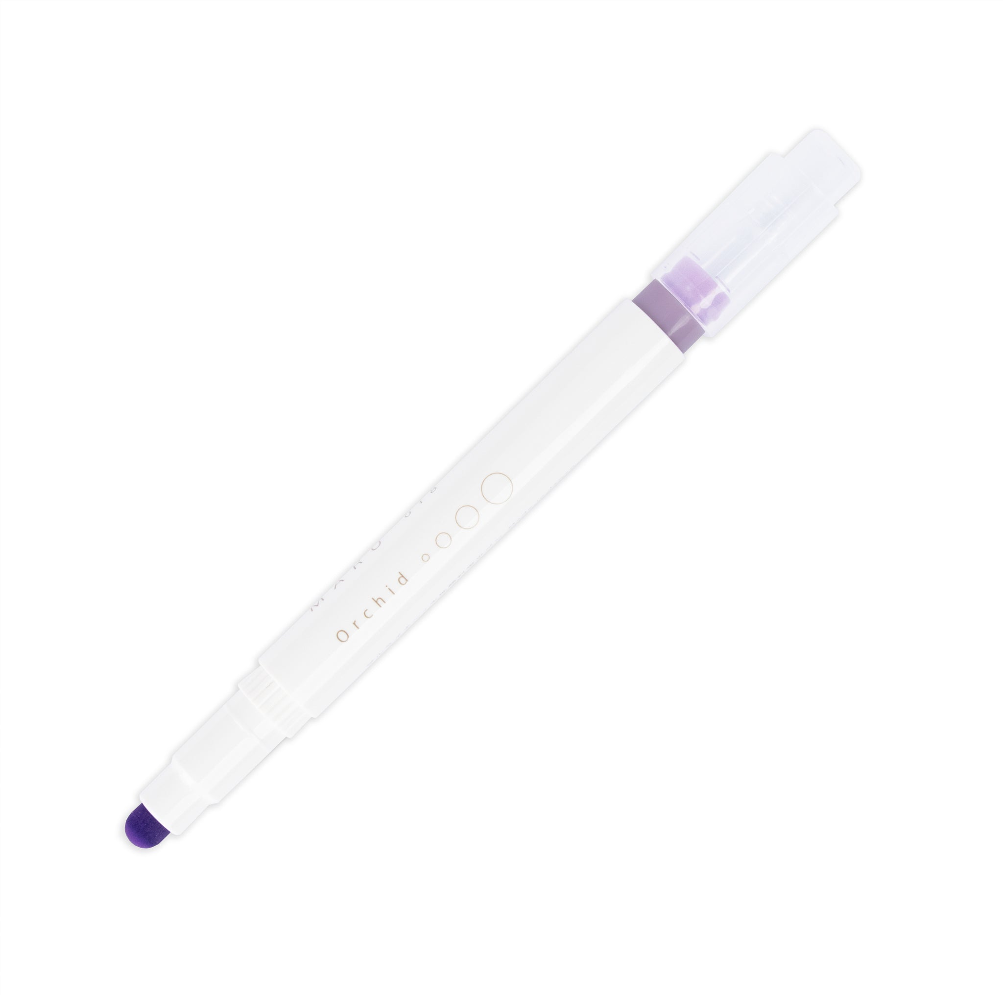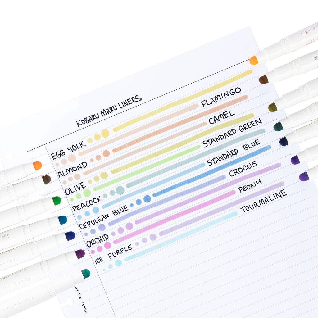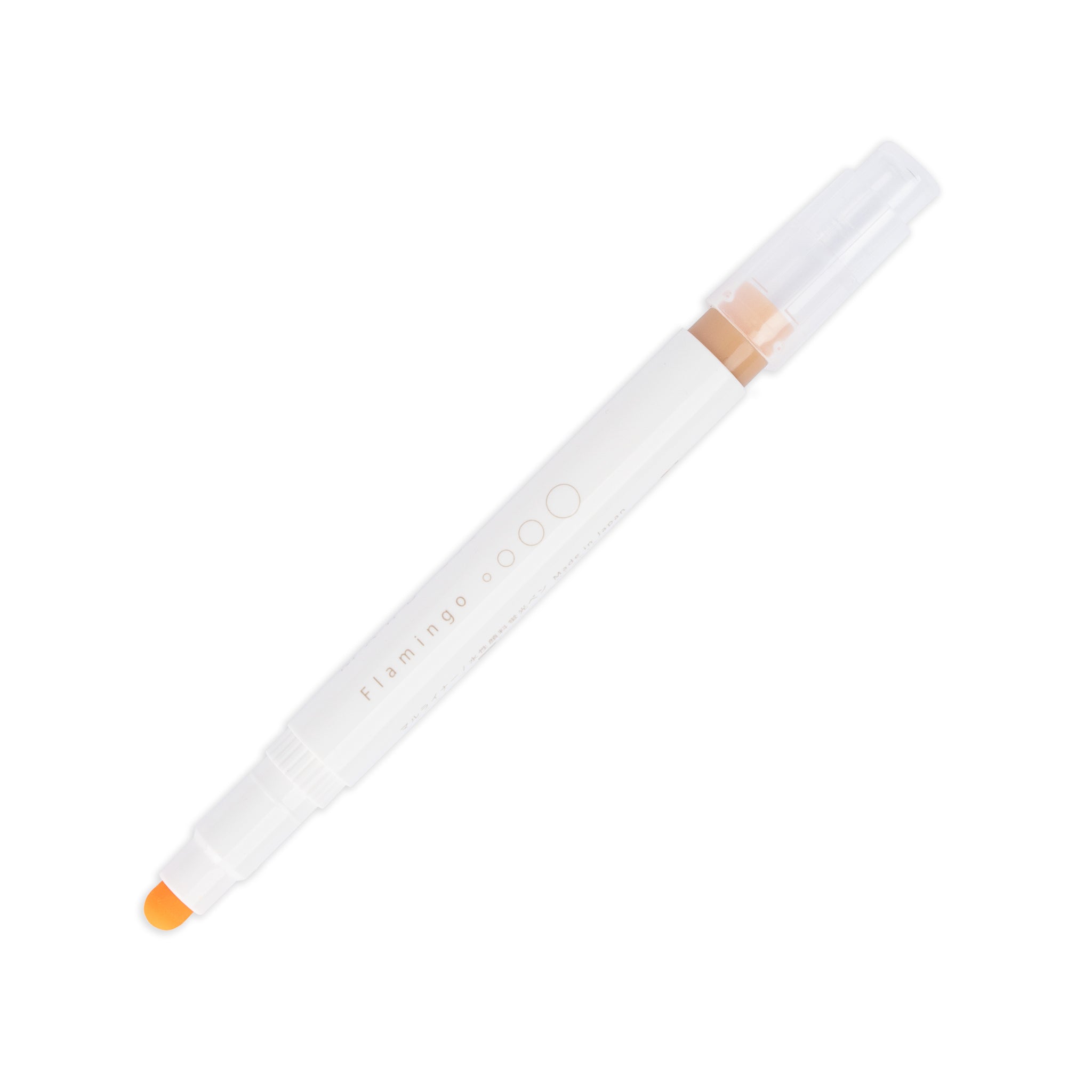Kobaru Maru Liner, Almond, Cloth and Paper. Almond highlighter with tip exposed and cap posted to the end of its barrel on a neutral background.