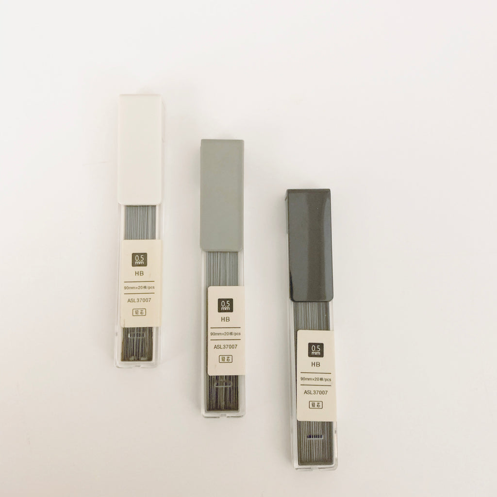 Refined 0.5 mm HB pencil lead in a sturdy case, ideal for everyday writing.