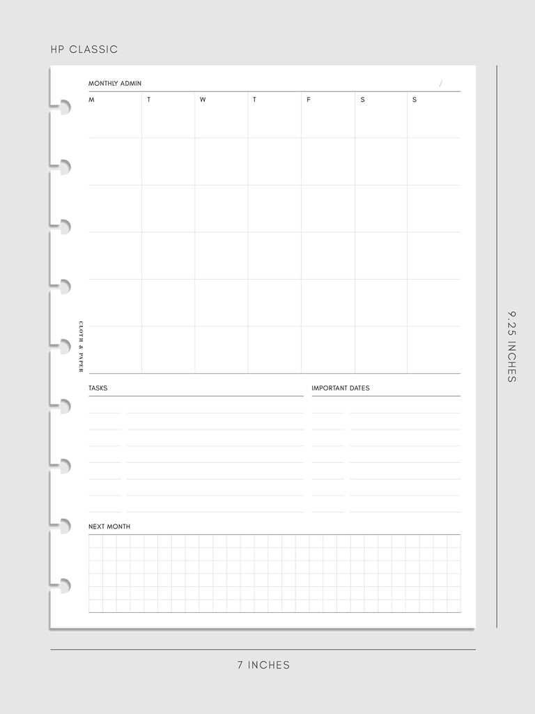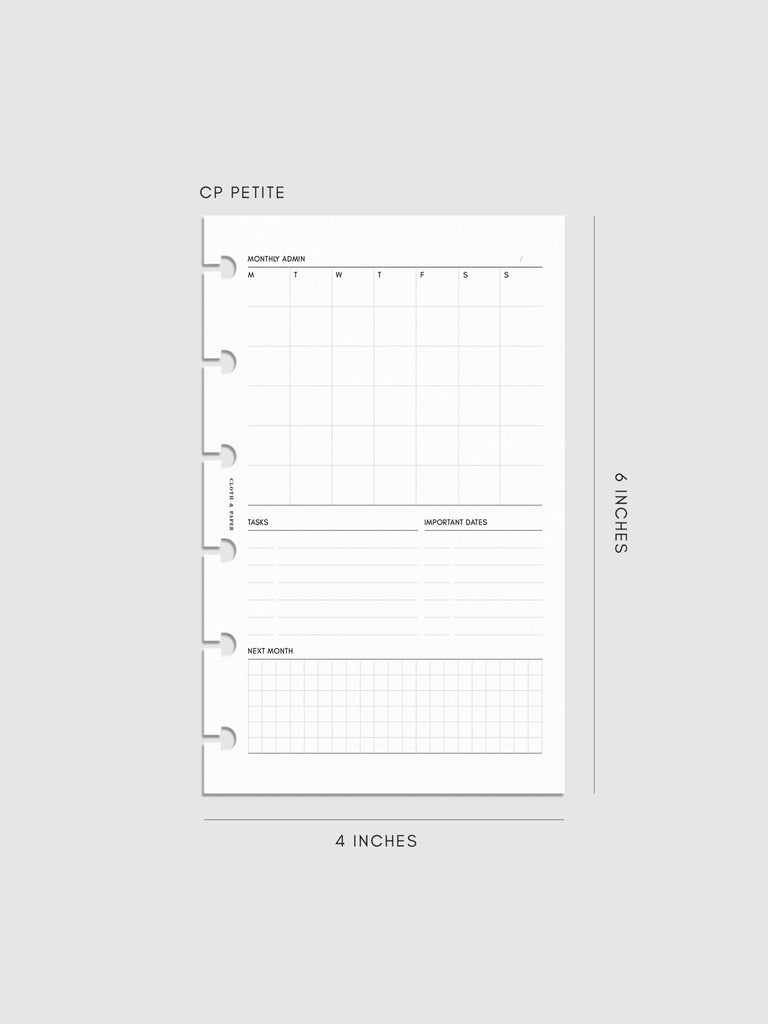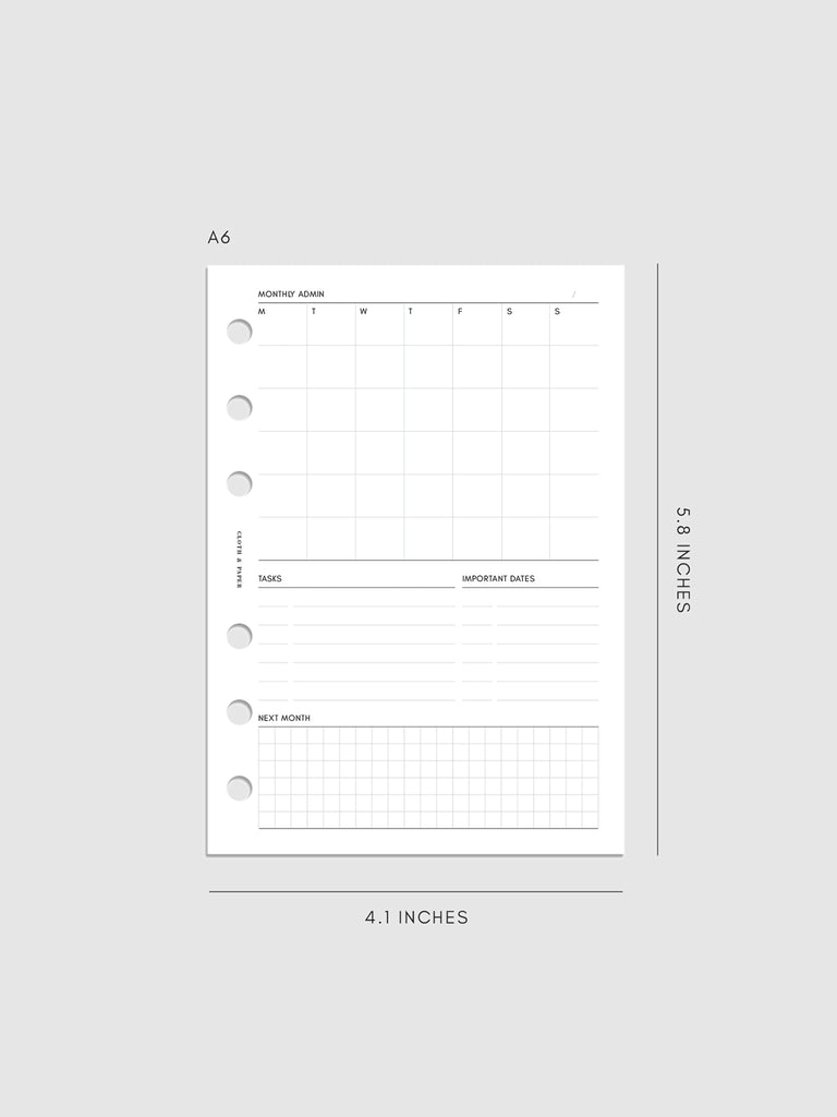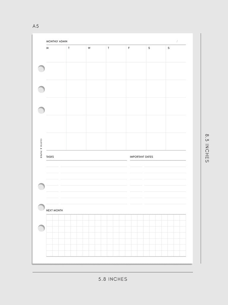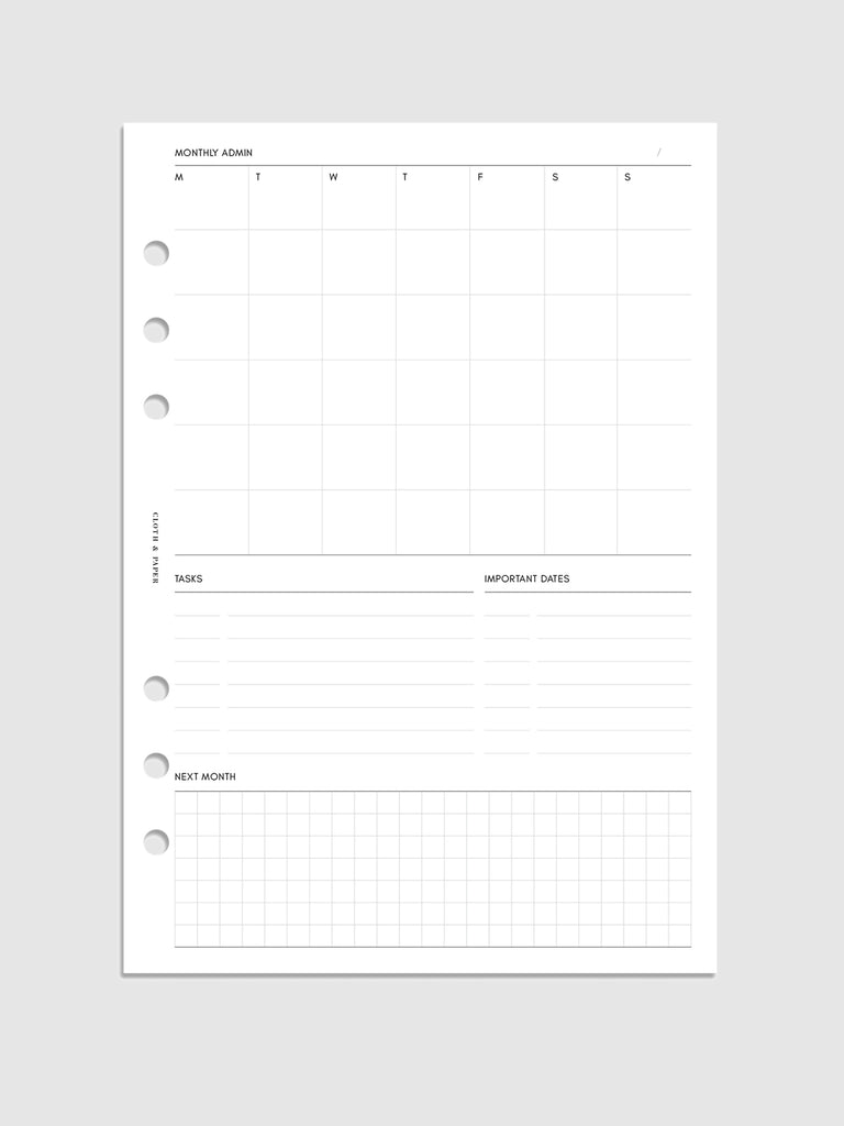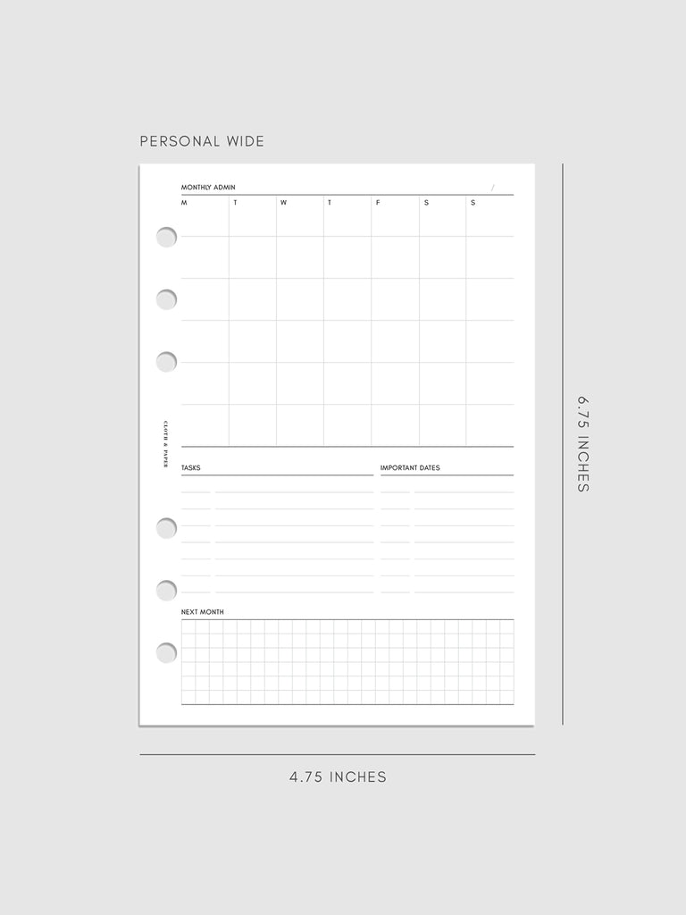 Monthly Admin Planner Inserts | Monday Start