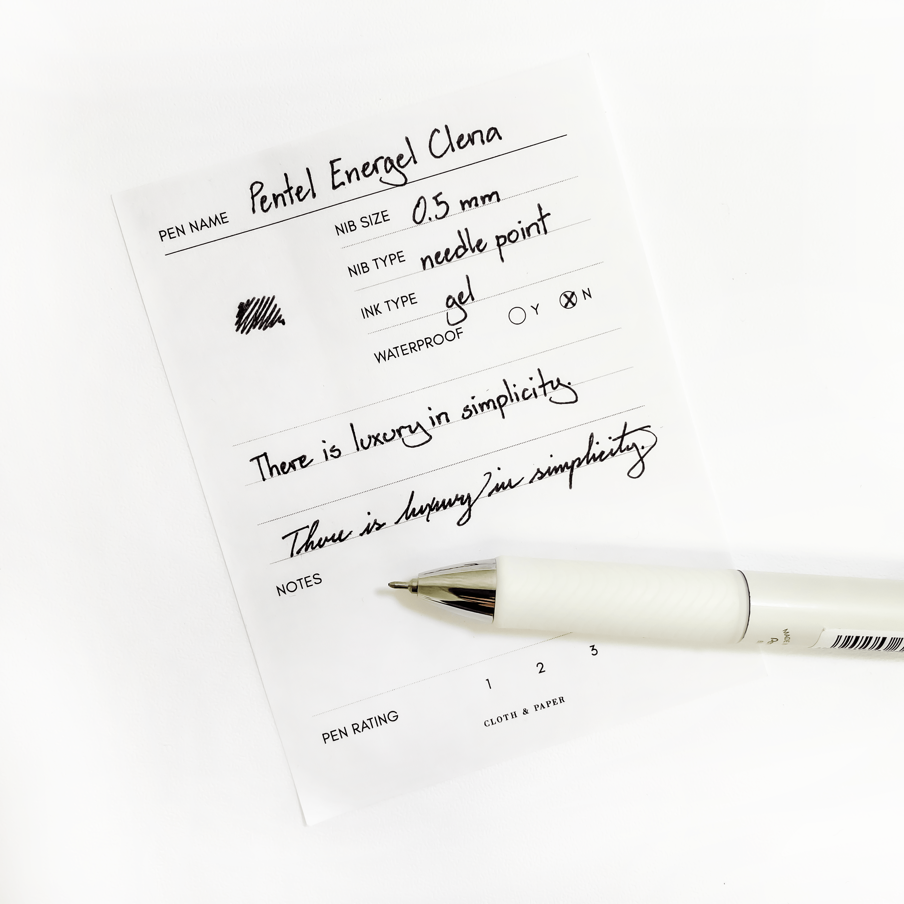 A retractable 0.5 mm gel pen with quick-drying black ink and a comfortable grip.