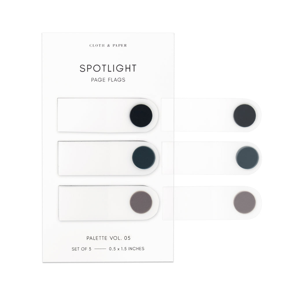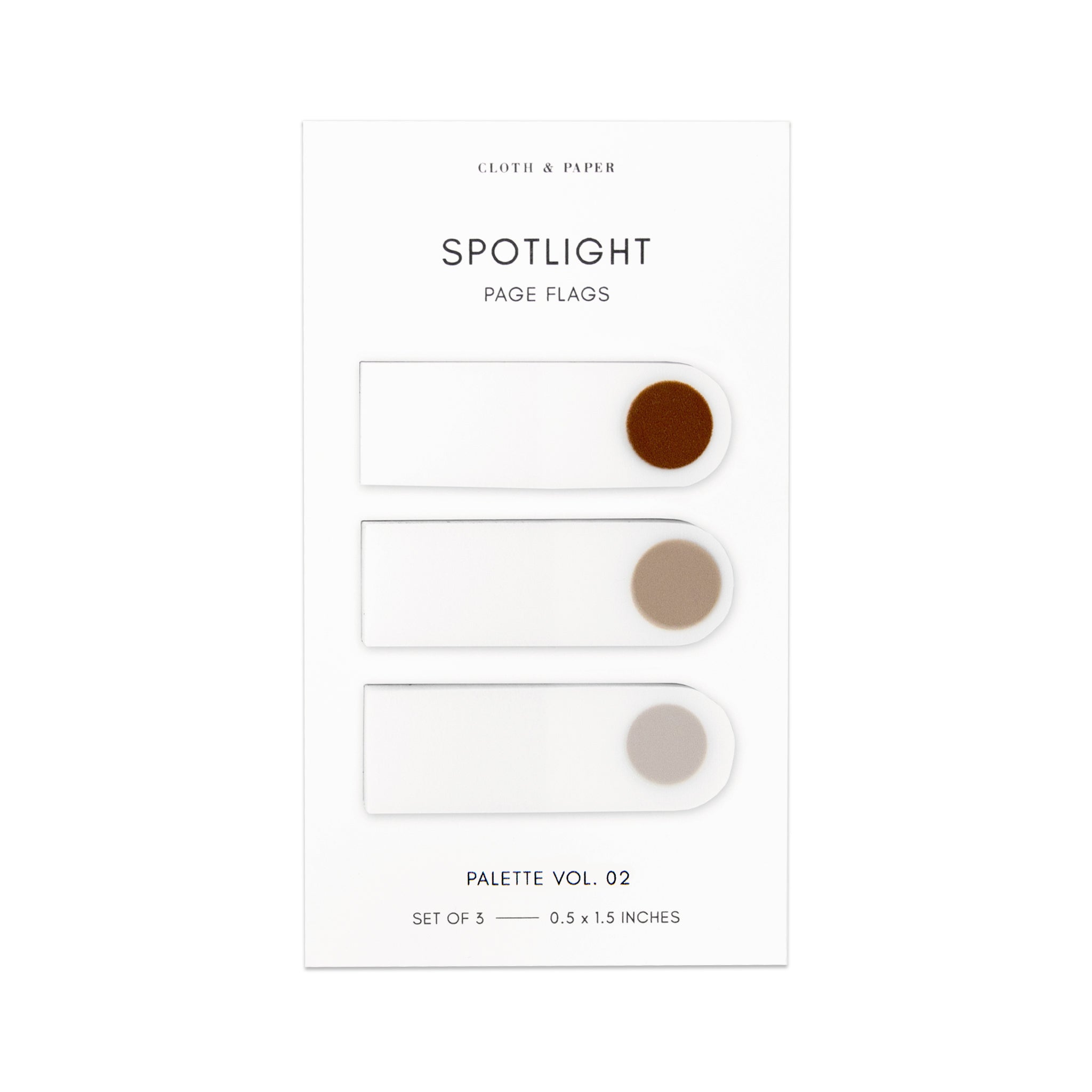 Set of spotlight page flags against a neutral background. Palette shown is Vol 05.
