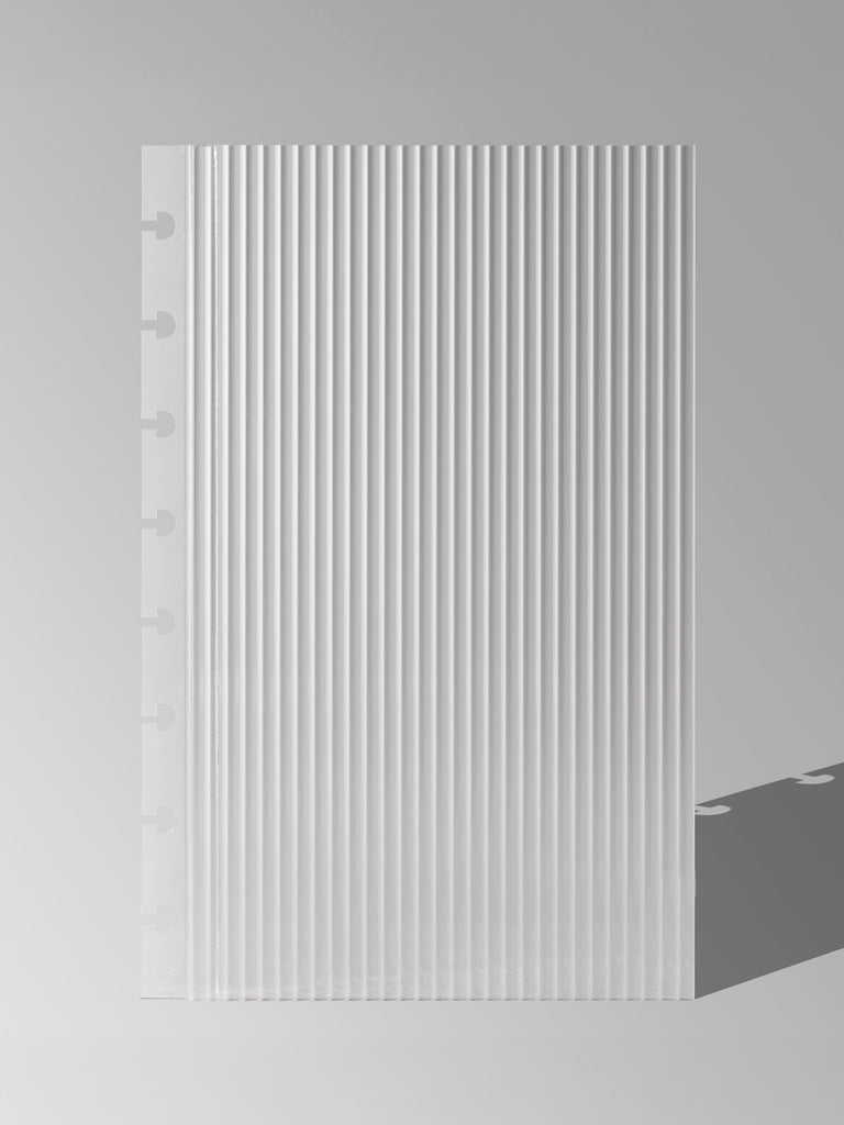A clear polycarbonate planner dashboard with a fluted design that creates layered visual effects.