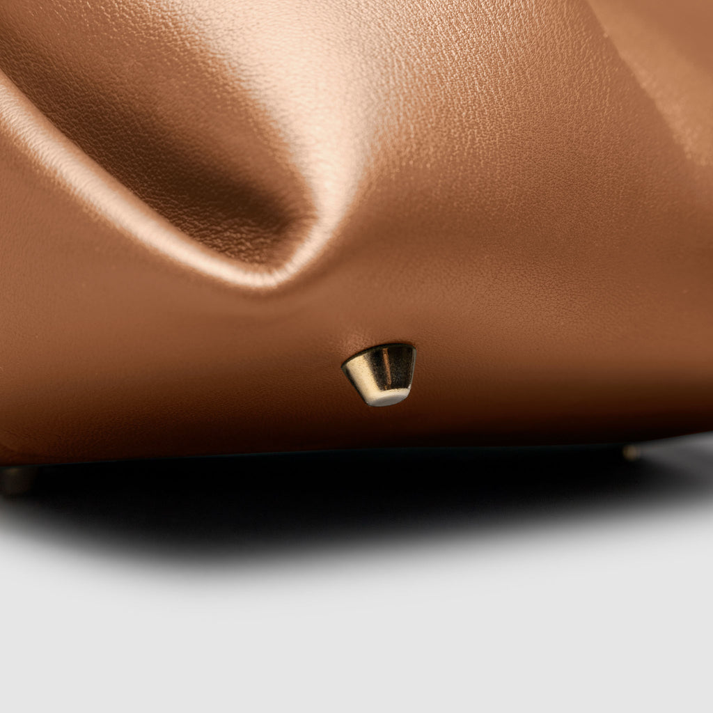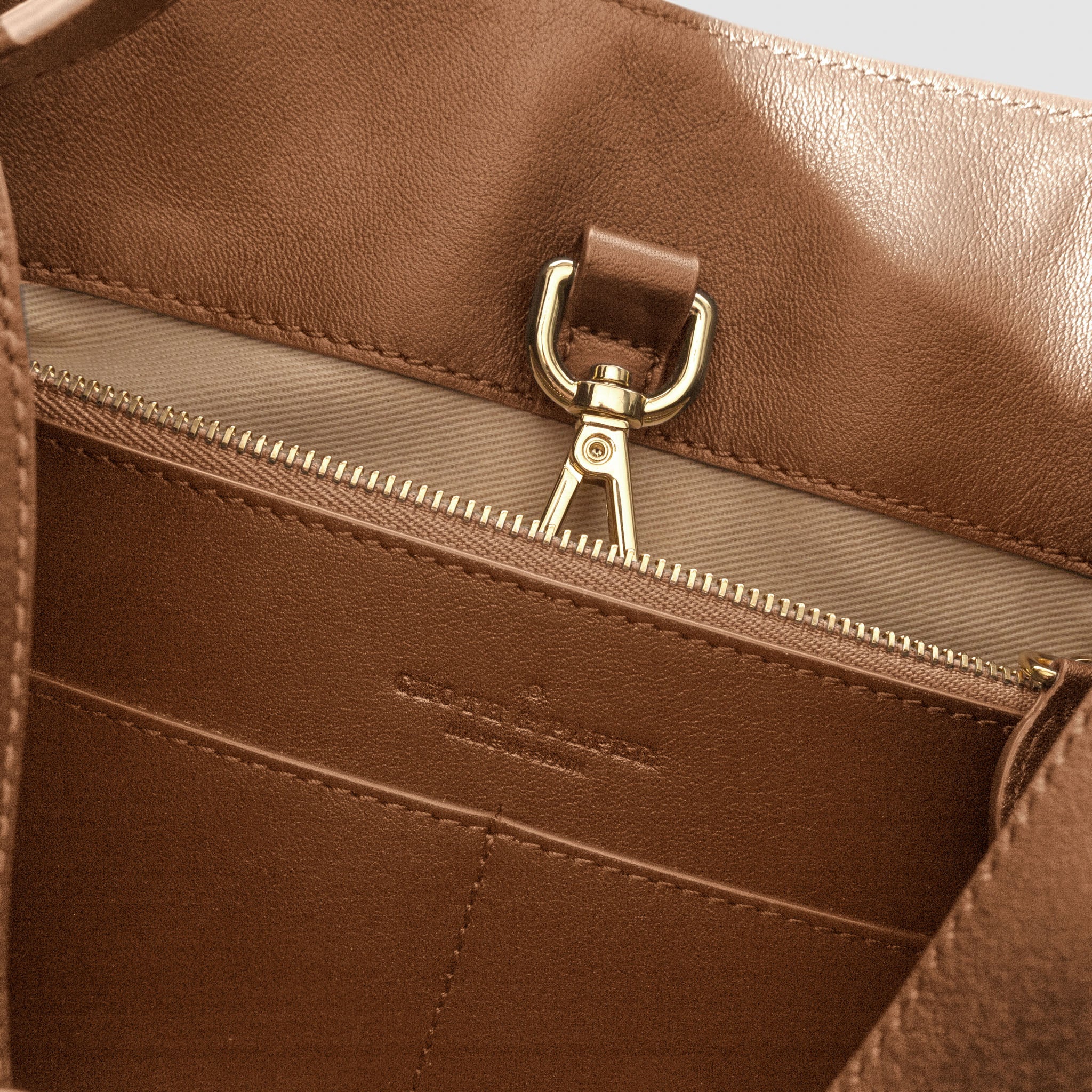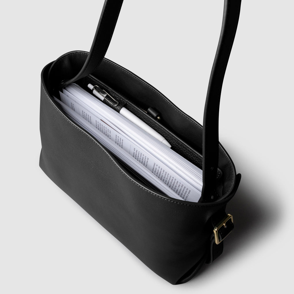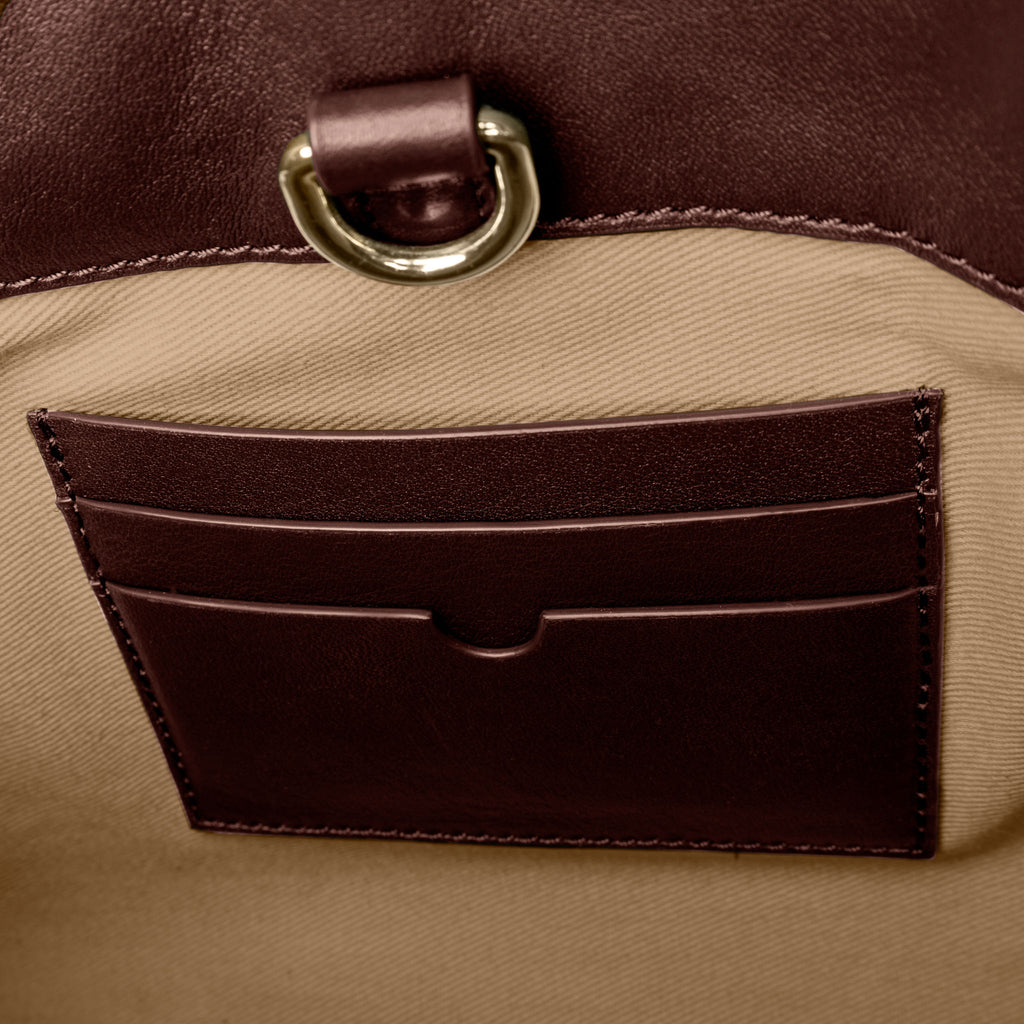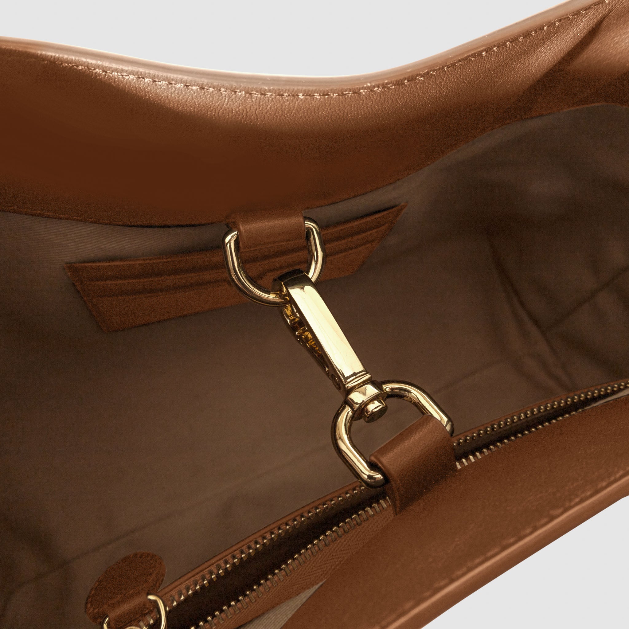 Valencia Bag in genuine Spanish cowhide leather with gold hardware, featuring a spacious compartment, internal zipper pocket, and credit card slots for elegant, versatile carrying.