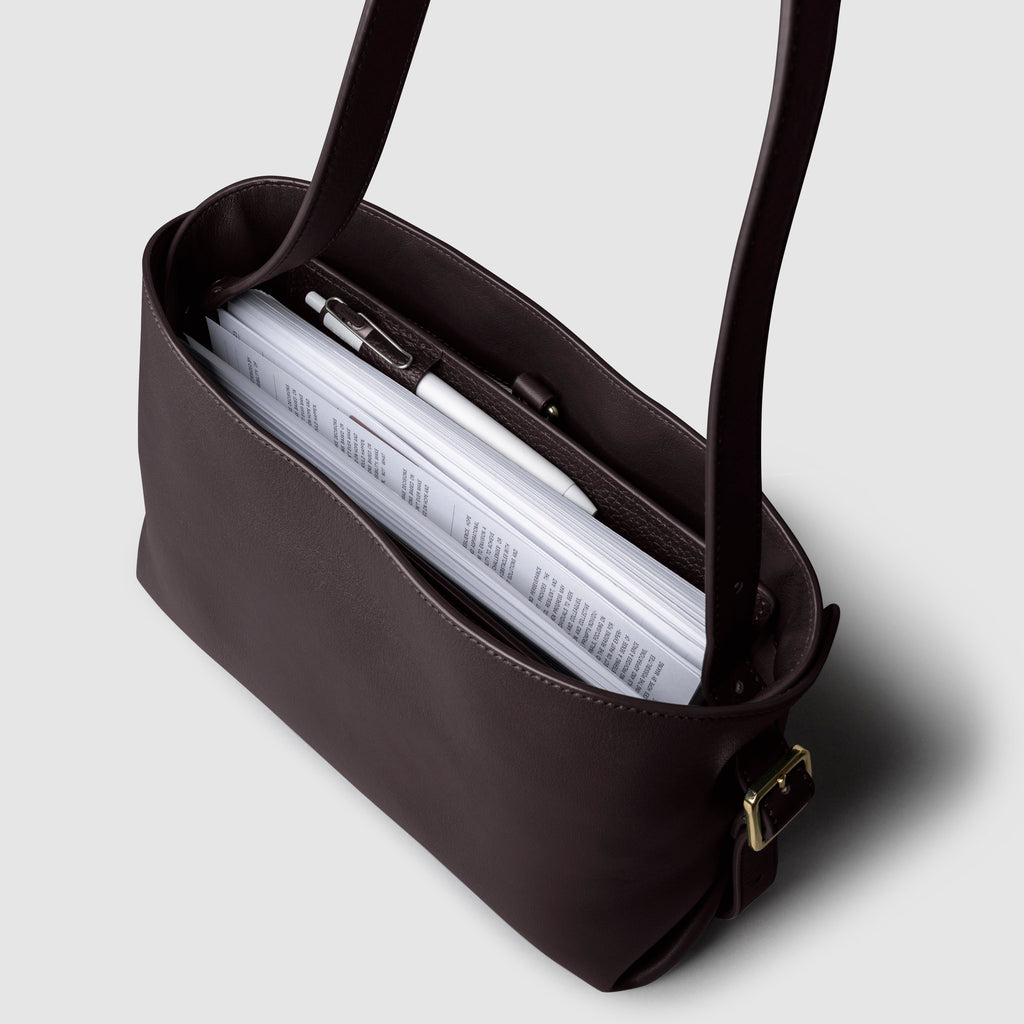 Leather bag displayed on a neutral background. Color shown is Alhambra.